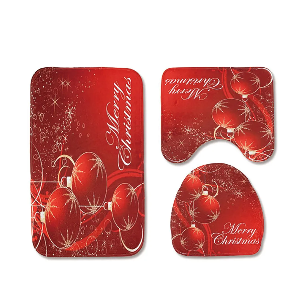 Коврик для ванной комнаты с рождественским принтом, набор ковров из трех предметов