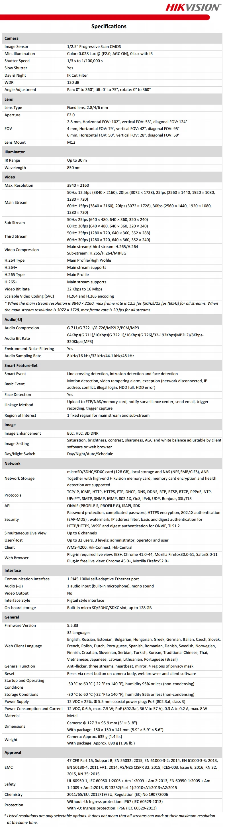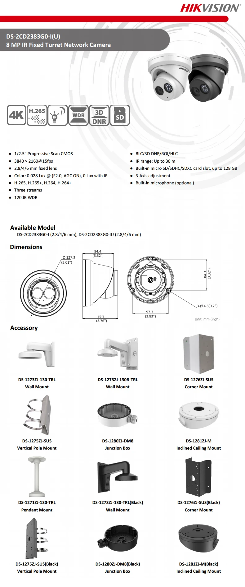 DS-2CD2383G0-I 8MP 4K POE камера IP 30m ir turret наружная cctv камера H.265 +