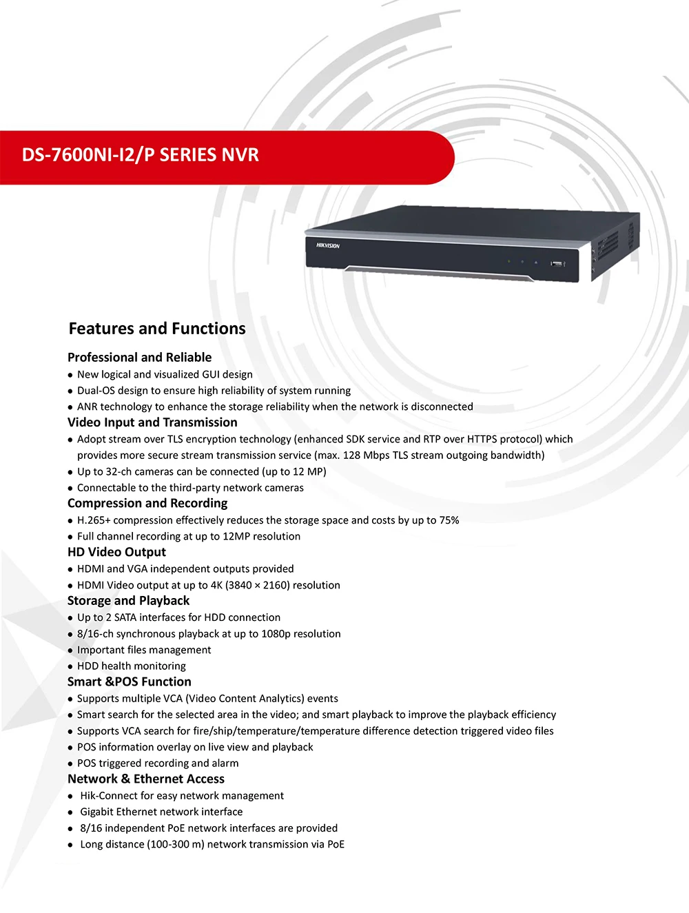 DS-7608NI-I2/8P Hik 4K NVR POE 8ch 2 SATA для HDD сетевой видеорегистратор onvif для Ip заглушка камеры & Play H.265 +