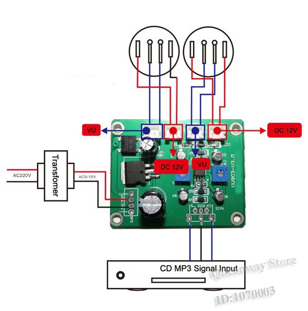 1 шт. плата драйвера и 2 шт. VU метров Вход AC/DC 9-15 в