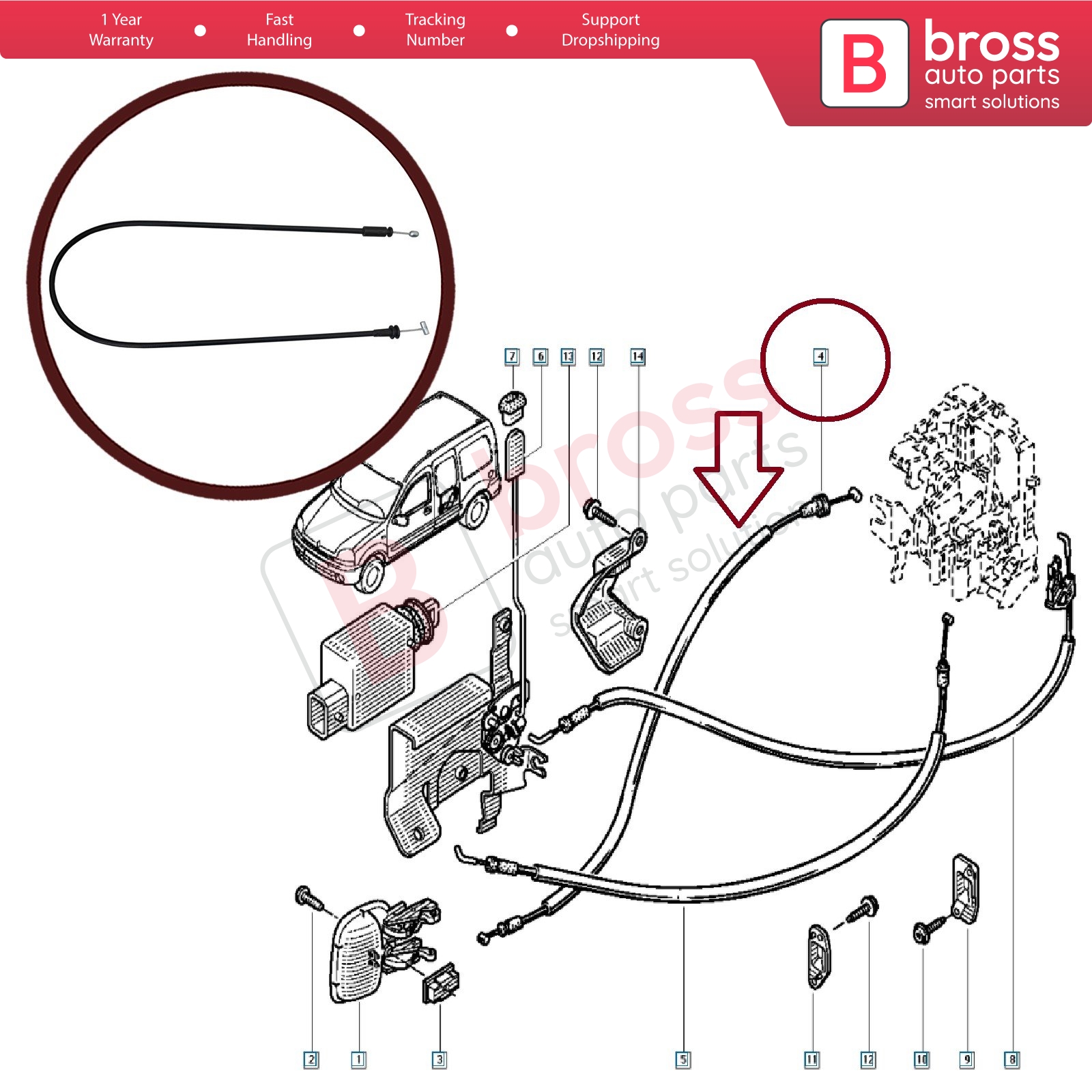Наш код SKU:BDP667Правая раздвижная внутренняя дверная защелка Боуден кабель 8200182966 для Renault Kangoo MK1