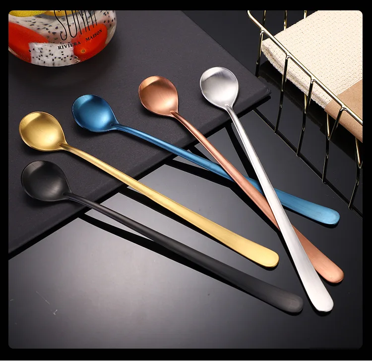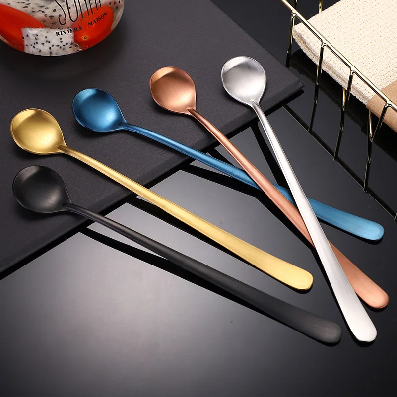 Прекрасный кофейная чайная ложка с кошкой Нержавеющая сталь длинная ручка висит
