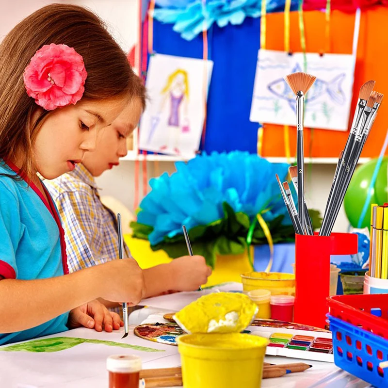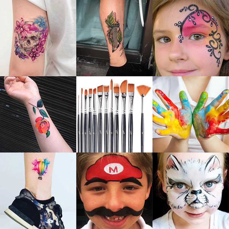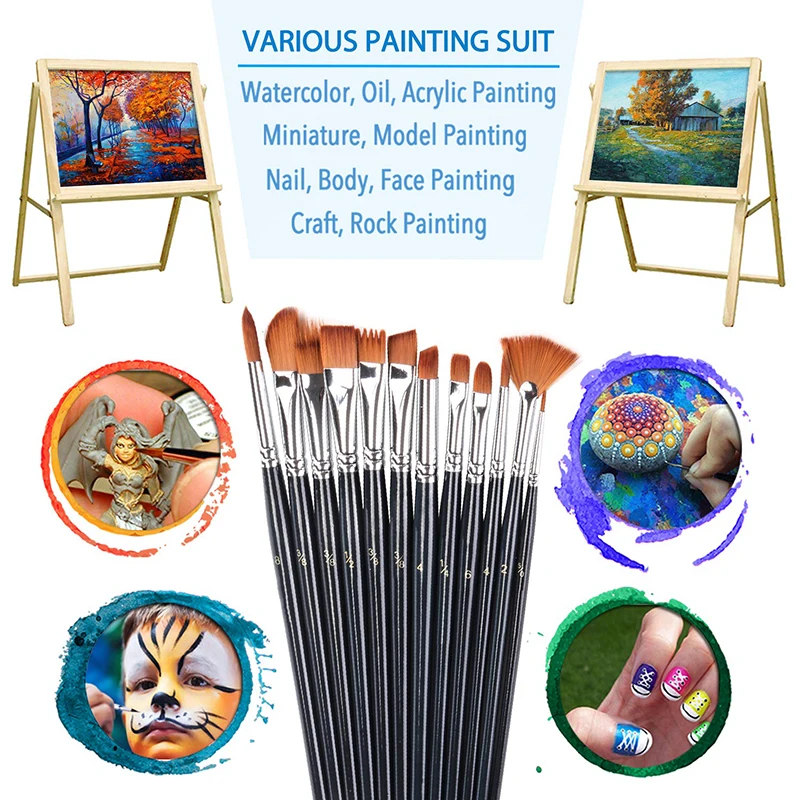 1. Бесшовные никелевые наконечники не ржавеют и не расколятся. Они имеют двойной Обжим, чтобы прослужить дольше, и не разболтаются после нескольких видов использования. 2. Кисти не линяют волоски. Больше не нужно огорчаться, чтобы снять волосы с Ваших произведений искусства. 3. Легче чистить и не портится так быстро. 4. Короткие деревянные ручки с гладкой отделкой, идеально подходят для большего контроля над мелкими деталями. Пакет включает в себя: 1 набор кистей для рисования (12 различных кистей для рисования)