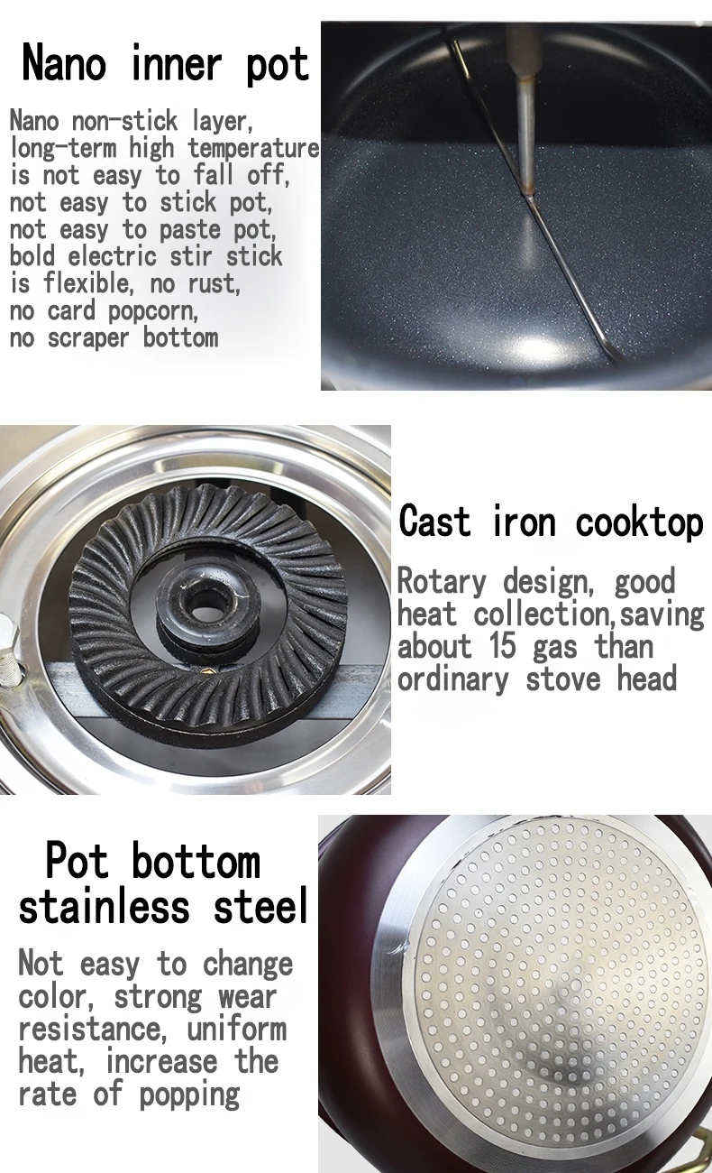 Бренд: GUYX Способ нагрева: нефтяной сжиженный газ Метод перемешивания: ручное смешивание Размер внутреннего горшка: Длина 28,5 см, высота 16 см Размер корпуса: 38*36*40 см