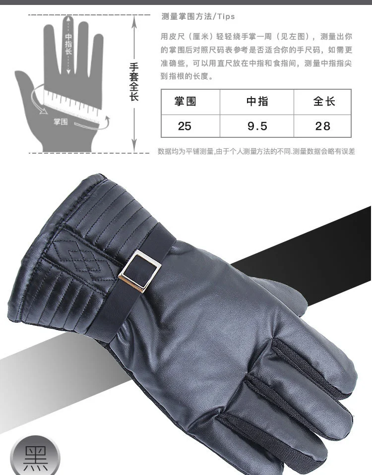 Окружность ладони: 25 см Полная длина: 28 см Длина среднего пальца: 9,5 см