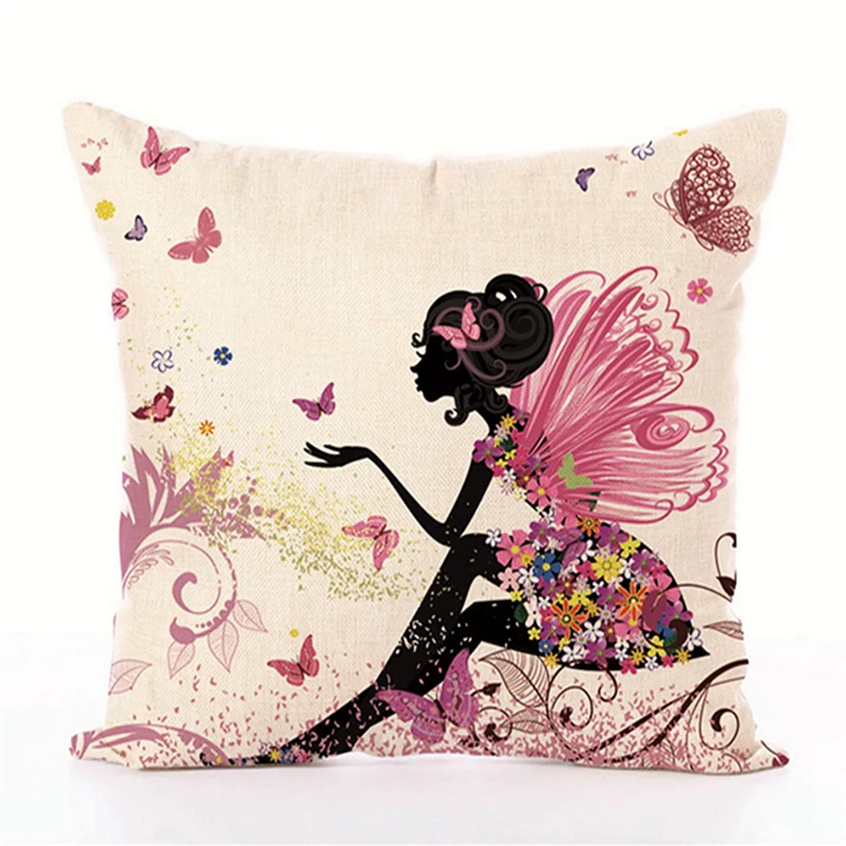 Название товара: FВоздушные сказки стиль цветок Фея Горячая печать льняная наволочка