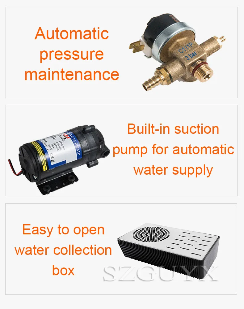 Бренд: GUYX Название продукта: паровой двигатель с постоянной температурой Цвет изделия: серебристый Модель изделия: WSD-600 Мощность: 2000 Вт Номинальная емкость: 10 л Размеры: 260x347x560мм