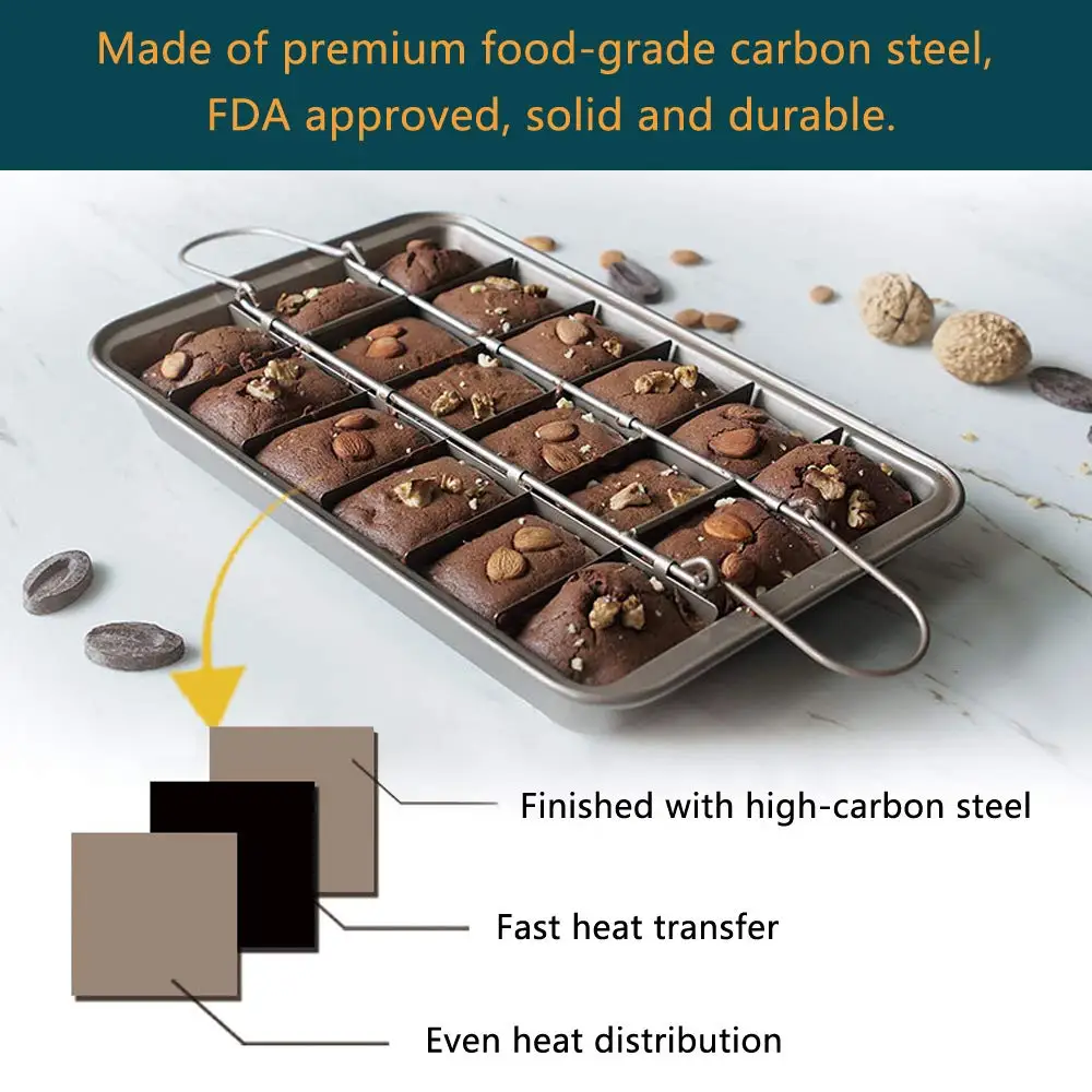Сочетает в себе антипригарную, суперпрочную поверхность-легко выпекайте вкусные пирожные с антипригарным противнем для выпечки коричневого цвета. Идеально подходит для всех ваших выпечки, форма для выпечки изготовлена из углеродистой стали и имеет прочную антипригарную поверхность, поэтому вы можете смешивать тесто прямо на сковороде! После выпечки каждый домовой легко выскакивает из кастрюли по одному. Вам не нужно использовать масло или масло супер антипригарное покрытие самые липкие ингредиенты соскальзывают сразу. Делает 18 идеально нарезанных пирожных-раствор ломтика brownie pan создает безупречные и одноразмерные пирожные. размер каждой части 2 ”x 2,6”. он имеет металлический разделитель, чтобы предварительно нарезать пирожные, когда они выпекаются. поэтому не нужно резать каждый кусочек ножом. Каждый домовой может быть настроен с орехами, конфетами или любой другой начинкой!. Afer закончите выпечку, выньте разделитель легко, затем подавайте. Одобрено FDA, идеально подходит для вкусных и здоровых блюд-ищете простой способ испечь здоровые и вкусные пирожные. Эта сковорода edge brownie поможет вам испытать радость от выпечки. С этой сковородой вы сможете найти свою страсть пекаря. Стильный Цвет, износостойкость и деформация. Посуда PTFE/PFOA/PFOS бесплатно. 100% безопасен для использования, без токсичных химических веществ. Делает выпечку пирожных тонной удовольствия! Быстрая передача тепла и равномерное распределение тепла-Heave-gauge стальной сердечник нагревается равномерно. Выпечка поднимается и выпекается равномерно из-за превосходной теплопроводности и усиленного инкапсулированного обода предотвращает деформацию.
