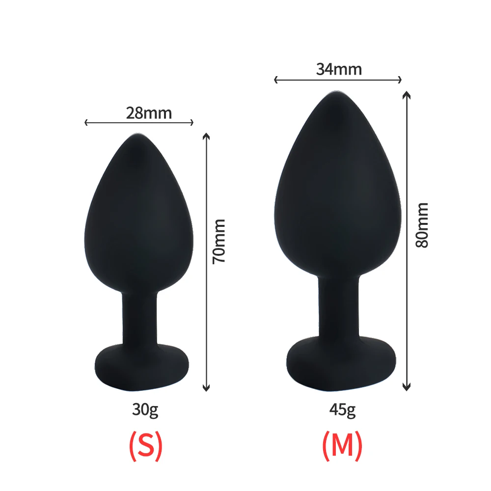 1.Silicone material. 2.Color: Yellow, Red, Purple, Transparent, Green, Black ... 3.Product size: Medium: L80*D34mm;Small: L70*D28mm 4.Crystal Diamond Anal plug. 5.Net weight: medium 45g; small 30g 6.Discreet package,the product pack with black plastic bag without sex words,we will protect your privacy. 7.Waterproof:100%waterproof 8.Packaging:Discreet packaging. 9.Easy clean:After use,Warm water and soap can be used to clean,with special detergent and disinfectant.