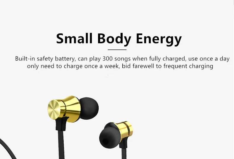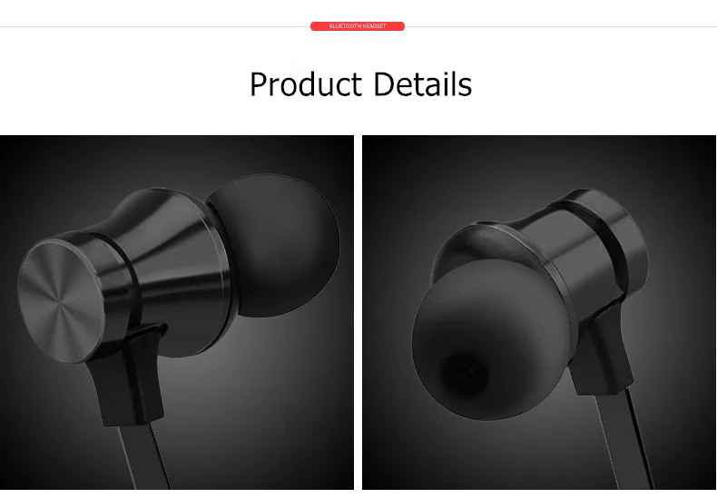 Особенности: -Эксклюзивные патенты на дизайн, эргономичный дизайн наушников, удобно носить с легкостью. -Дизайн ушей, снижающий лучшие мировые басы. -Уникальный Магнитный контроль, не легко упасть. -Встроенный микрофон с высокой чувствительностью, более четкое качество голоса. -Встроенный литиевый аккумулятор, поддерживает 2 часа быстрой зарядки, обеспечивает до пяти часов воспроизведения музыки/разговора. -Bluetooth один с двумя для удовлетворения потребностей нескольких источников. -С помощью кнопки воспроизведения вы можете управлять музыкальным проигрывателем, совершать и принимать звонки и другие функции. Характеристики: -Цвет: пистолет/черный -Версия Bluetooth: CSR4.1 -Объем работы: > 10 метров (отключен) -Время в режиме ожидания: > 180 часов -Срок службы: > 1 ~ 3 часа -Время зарядки: 1 час -Соглашение о поддержке: A2DP, AVRCP, HSP, HFP -Частотная характеристика: 20 Гц-20 кГц Посылка: 1 х bluetooth-наушники 1 х USB кабель для зарядки 1 x Руководство пользователя