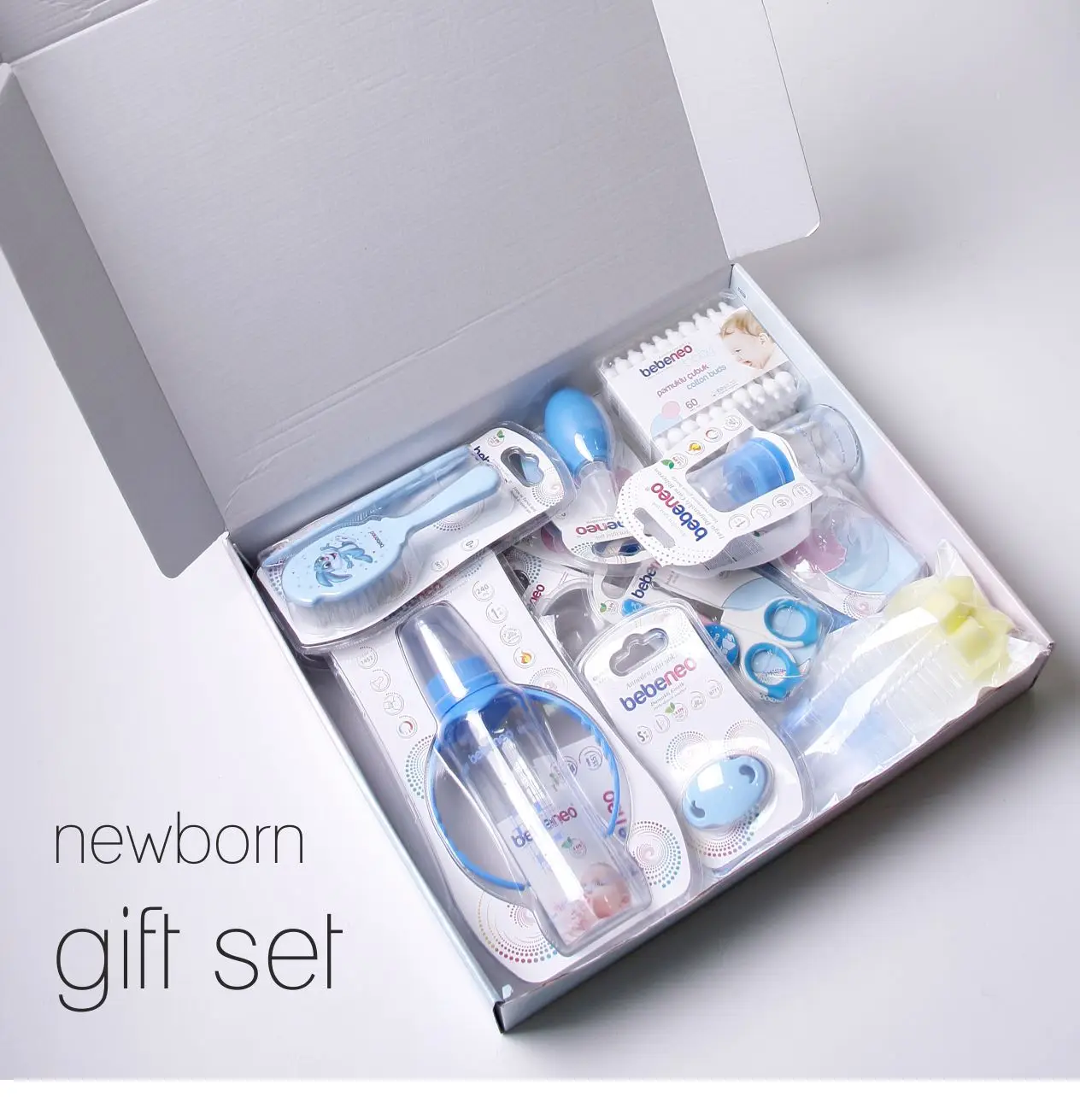 • Термостойкая стеклянная бутылочка для кормления 60 мл • Термостойкая стеклянная бутылочка для кормления 240 мл • Щетка для чистки детских бутылочек 2 шт. • Водный Прорезыватель для зубов • Губка для ванны (НАТУРАЛЬНАЯ целлюлоза) • Носовой всасывающее устройство • Набор кистей + расческа • Ножницы для ногтей • Силиконовая защита для груди • Хлопковый тампон для ухода за ребенком; 60 шт. • Ортодонтическая пустышка с крышкой и держателем No: 1 • Милая Ортодонтическая пустышка с крышкой №: 1