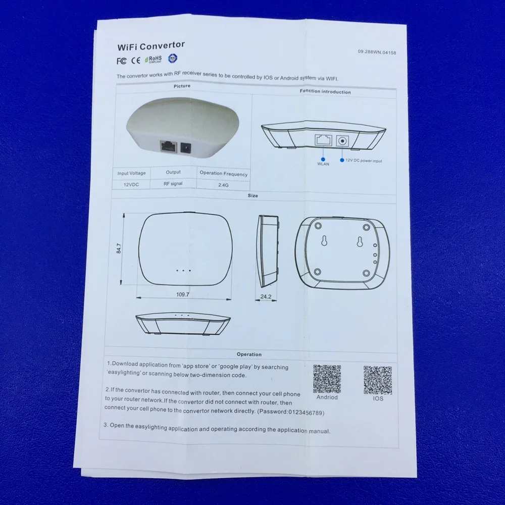 Wi-Fi-конвертер (из WiFi в RF) к контроллерам серии SR-1009x для управления от смартфона по Wi-Fi. Софт для Apple в AppStore или для Android в GooglePlay искать EasyLighting. Питание DC 12V (адаптер в комплекте).