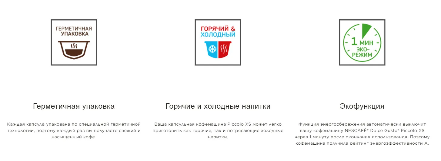 Специальные герметичные капсулы сохраняют свежесть молотого кофе надолго, позволяя вам наслаждаться ароматным напитком в любое время. Просто вставьте капсулу и закройте крышку – и наслаждайтесь 30 видами превосходных напитков от эспрессо, лунго, капучино и латте макиато до горячего шоколада, чая и холодных напитков.