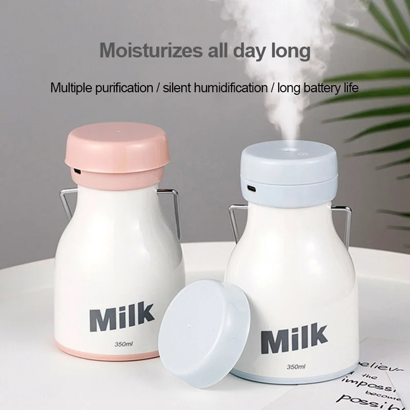 1. Увлажнитель для молочной бутылки, тонкий спрей, ультразвуковое распыление, бесшумное увлажнение 2. Избавьтесь от сухости, увлажнения и увлажнения, улучшения и увлажнения кожи 3,350 мл большой емкости резервуар для воды, добавить воду один раз для 8-11h 4. Многократная очистка, фильтрация примесей, мгновенное увеличение влажности воздуха 5. Сенсорная кнопка, интерфейс зарядки Type-C, светильник, портативный 6. Два режима распыления, одна кнопка для непрерывного распыления, другая кнопка для прерывистого распыления 7. Подходит для дома, офиса, спальни, гостиной, общежития, учебы и т. д.