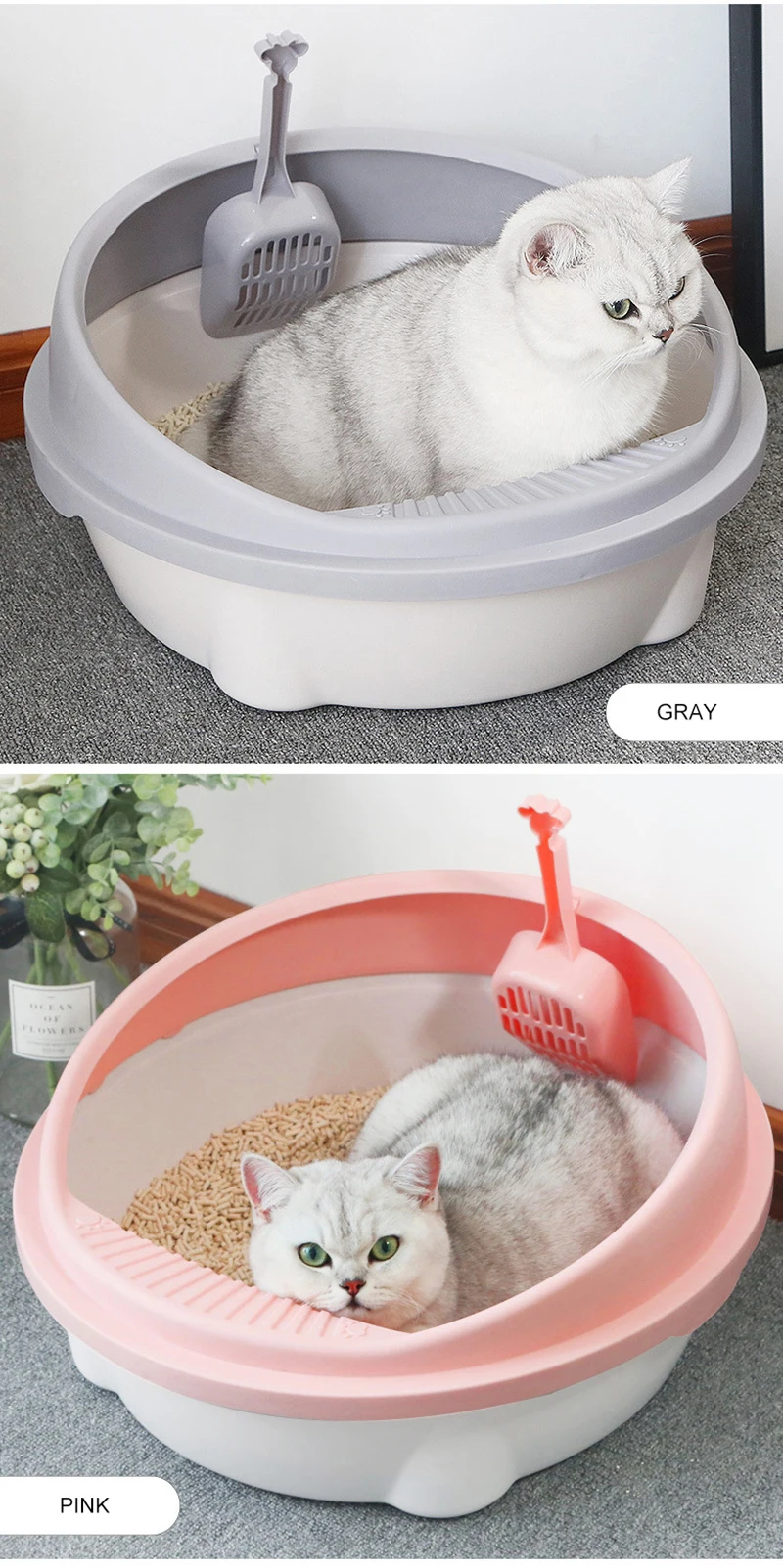 Название продукта: ящик для кошачьих туалетов Цвет: розовый, зеленый, серый Вес: маленький 400 г, Упаковка продукта: 1 шт. * ящик для кошачьих туалетов + лопата