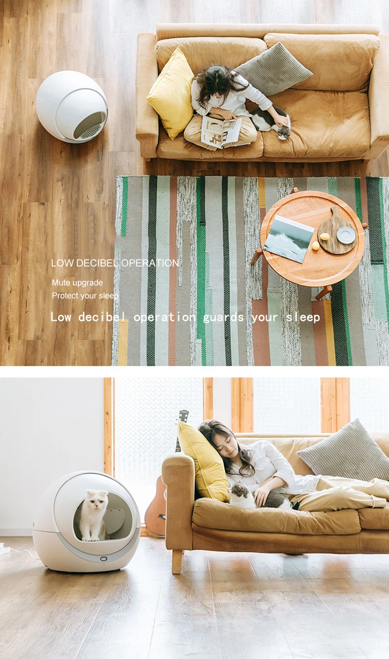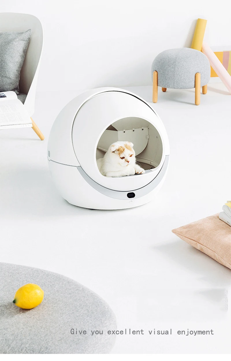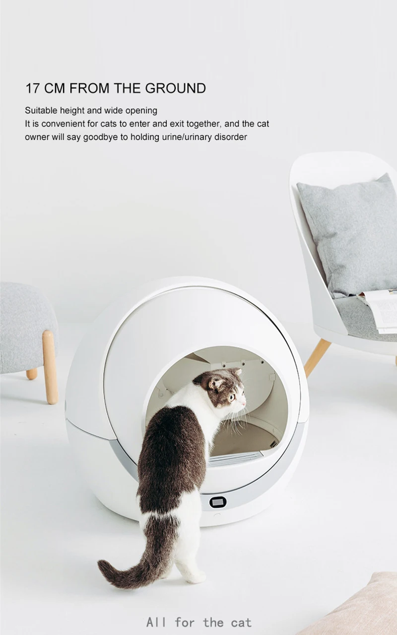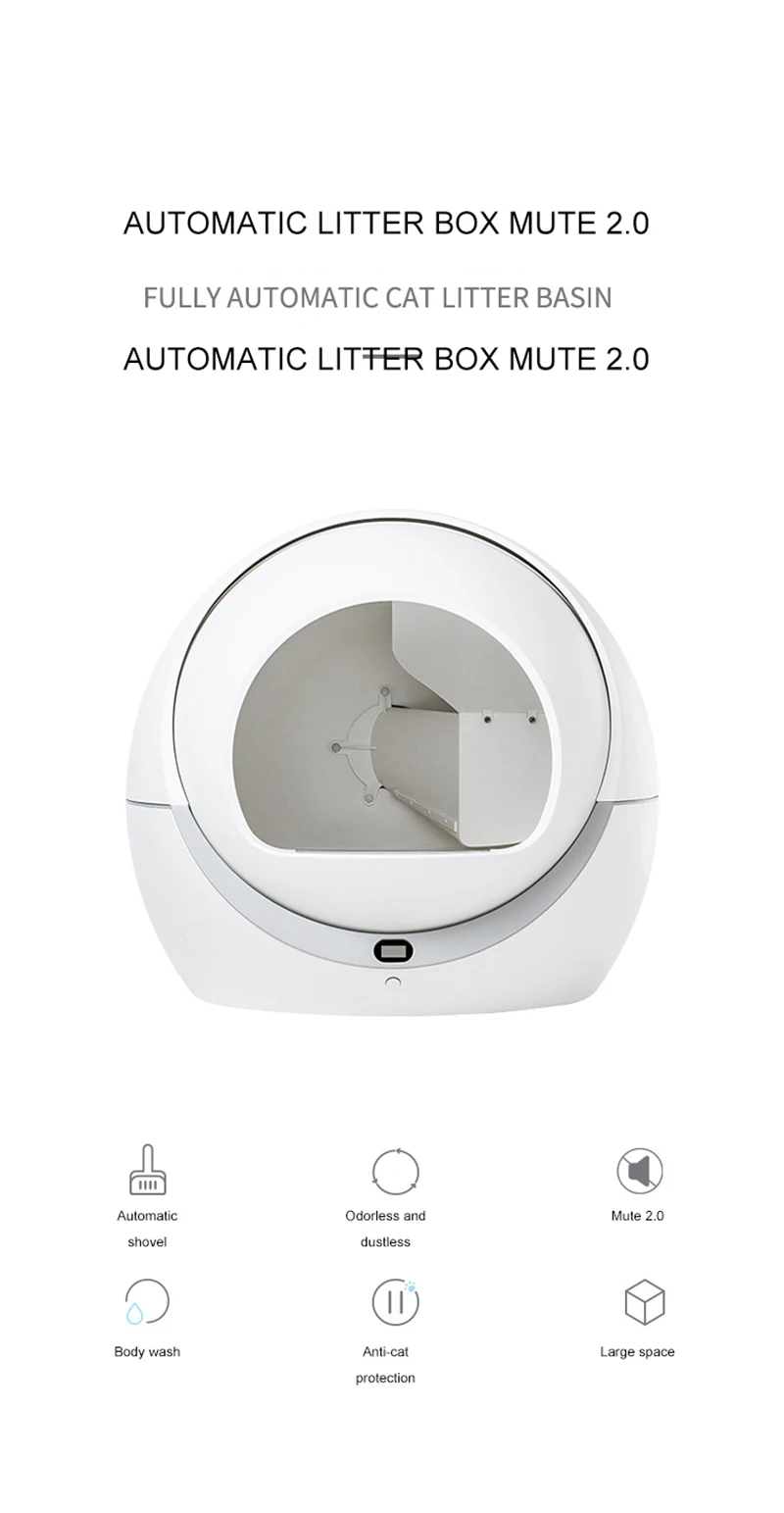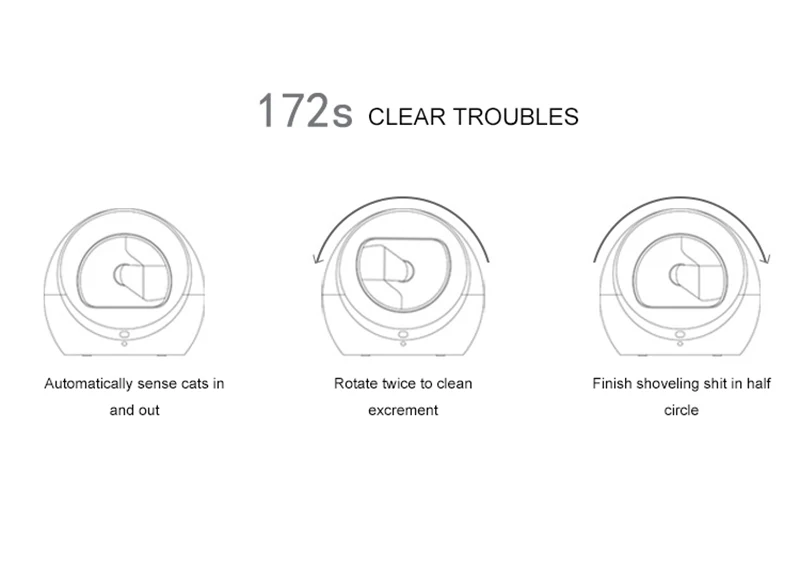 Although this product is expensive, it can solve all your problems. Features: 1. Auto-sensing design, when pets shit will be removed automatically 2. Automatically sense the cat's entry and exit, and rotate twice to clean the excrement. 3. Low decibel operation, guard your sleep 4. Small footprint and large space utilization. 5. Super activated carbon deodorizes and prevents peculiar smell. 6. The height difference opening design eliminates the hidden danger of pet suffocation. 7. The anti-biting wire safety design prevents cats from biting the wire and getting an electric shock, ensuring the product is durable. Material: PP resin Voltage: 12V Power: 5W Withstand the maximum cat weight: 20Kg Maximum amount of cat litter: 4Kg