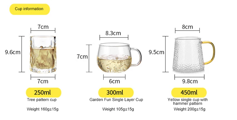 1200 мл квадратный забитый горшок (520 г ± 25 г): диаметр отверстия горшка 78 мм, высота 185 мм, низ 105 мм прямой, И низ 140 мм. 1500 мл квадратный забитый горшок (545 г ± 25 г): диаметр отверстия горшка 80 мм, Высота 210 мм, низ 115 мм прямой, А нижняя наклонная сторона-155 мм. 1800 мл квадратный забитый горшок (640 г ± 25 г): диаметр отверстия горшка 80 мм, высота 225 мм, низ 123 мм прямой, И низ 165 мм. 250 мл чашка (160 г ± 10 г): внешний диаметр 70 мм, высота 96 мм. 400 мл чашка (200 г ± 15 г): внешний диаметр 80 мм, высота 95 мм, нижний диаметр 100 мм. [Может выдерживать разницу температур] -20 ℃ до 150 ℃ [Область применения] используется для пивоварения ароматизированного чая, зеленого чая, черного чая, чая пуэр, ароматизированного чая, фруктового чая и т. д. Рекомендуется для использования дома, дома, в гостинице, клубе, KTV или офисе.