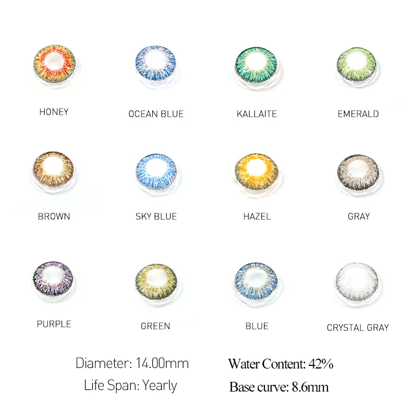 Это помогает изменить цвет зрачков, делает ваши глаза больше и делает вас более красивыми. Подходит для вечерние, косплея, показа моды, макияжа на Хэллоуин и т. д. Безопасный, удобный и прочный, используется для 1 год. Моды и популярны среди девушек и женщин. Тип: цветные контактные линзы Материал: HEMA Диаметр: 14,00 мм Объектив BC: 8,60 мм Содержание воды: 42% Цикл замены: 12 месяцев Мощность по рецепту: 0,00 Рекомендация для голубых глаз: бирюзовый/серый Рекомендация для зеленых глаз: Стерлинговый серый/блестящий синий Рекомендация для темных глаз: блестящий синий/Стерлинговый серый Комплектация: 1 пара * цветные контактные линзы Примечание. Линзы на разных цветах глаз будут показывать разные эффекты. Фотографии только для справки.