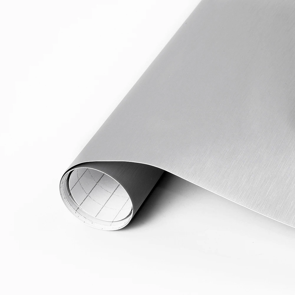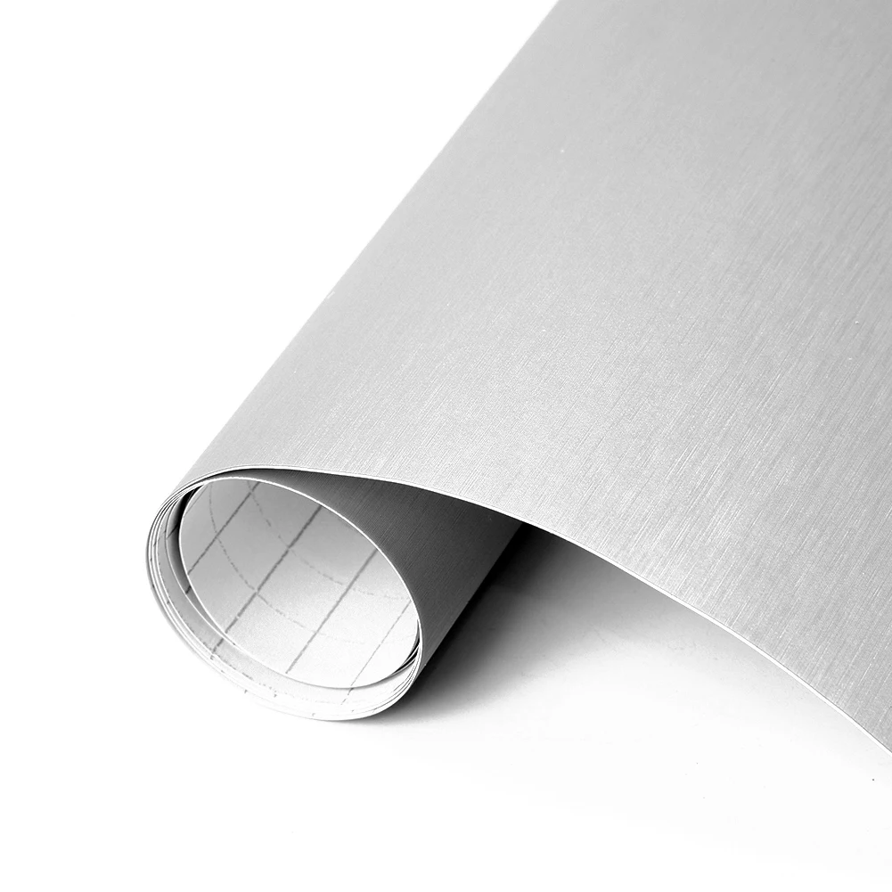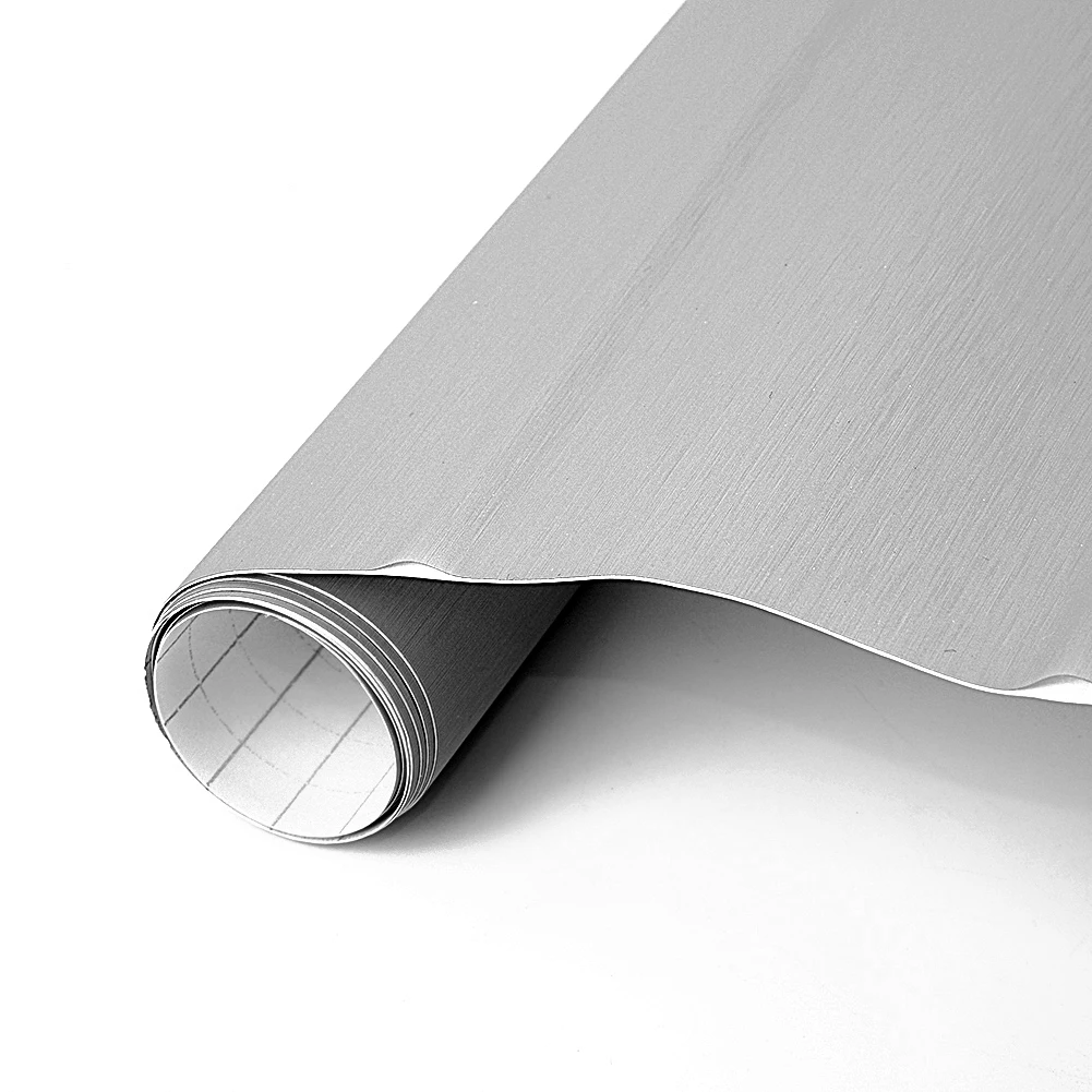 * 12 "x 60" Автомобильная металлическая матовая стальная виниловая оберточная наклейка Серебряная наклейка