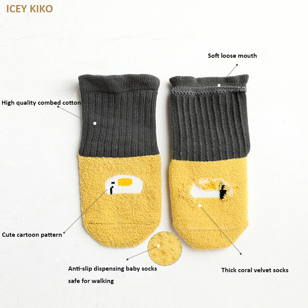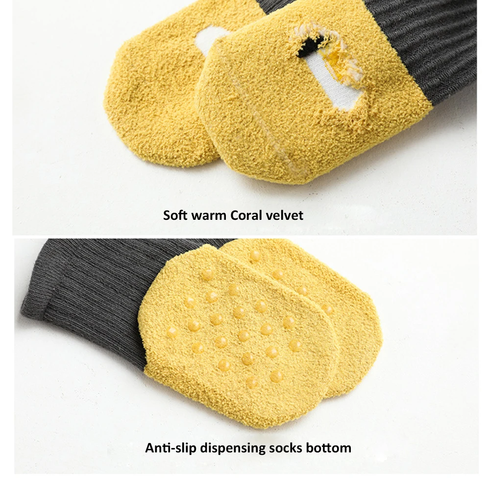 Осенне-зимние новые детские носки из плотного кораллового бархата с милым мультяшным принтом, Детские хлопковые носки, мягкие носки-тапочки для девочек