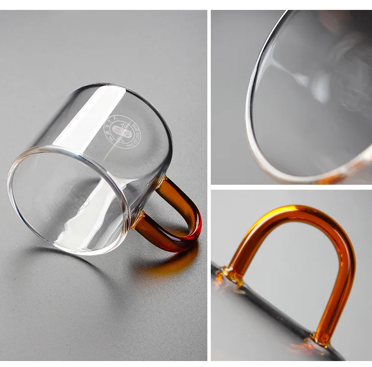 Стеклянная маленькая чайная чашка, высокая боросиликатная прозрачная чайная чашка кунг-фу, термостойкая стеклянная маленькая чайная чашка с цветной ручкой