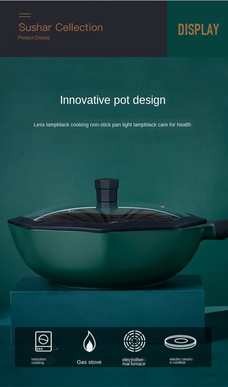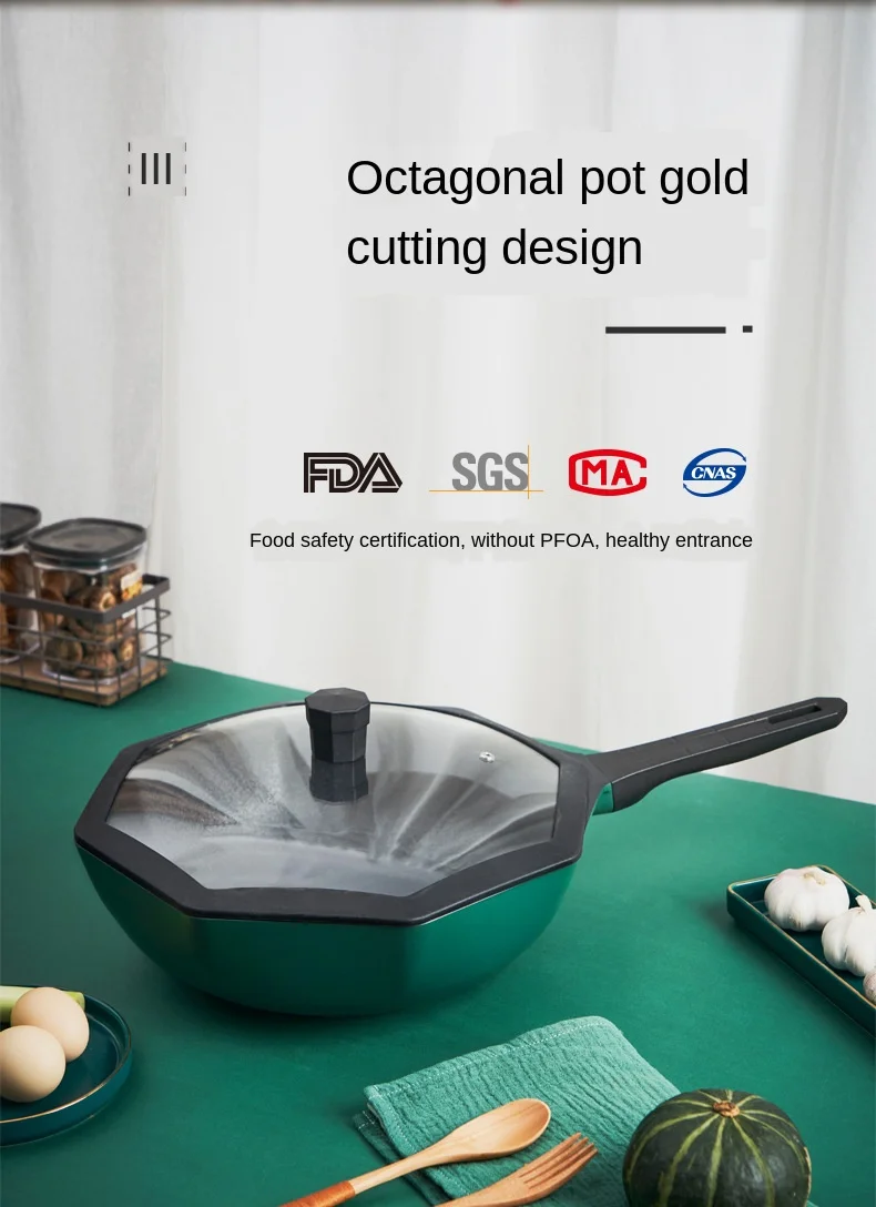 Есть ли у вас такие проблемы? 1. Обжарьте вещи, приклейте к сковороде и не выглядите хорошо. 2. Горшки тяжелые и мешают приготовлению пищи. 3. Кухонные вытяжки серьезны. Опасность для здоровья. Особенности этого продукта решают ваши проблемы: 1. Легкий и легкий, супер антипригарный! Вес без крышки составляет всего 1,2 кг! 2. Геометрический дизайн, острые края и углы, нескользящая и термостойкая, и противообжигающая бакелитовая ручка. 3. Сертификация безопасности пищевых продуктов, без PFOA. 4. Прозрачная крышка, пищевое Силиконовое кольцо. 5. Композитная утолщенная пленка, теплопроводность быстрее и более равномерно нагревается. 6. Индукционная плита, газовая плита, электрическая плита, электрическая керамическая плита могут быть использованы. Параметры продукта: 1. Диаметр: 30 см 2. Глубина: 9 см 3. Объем: 5,2 л 4. Материал: алюминиевый сплав
