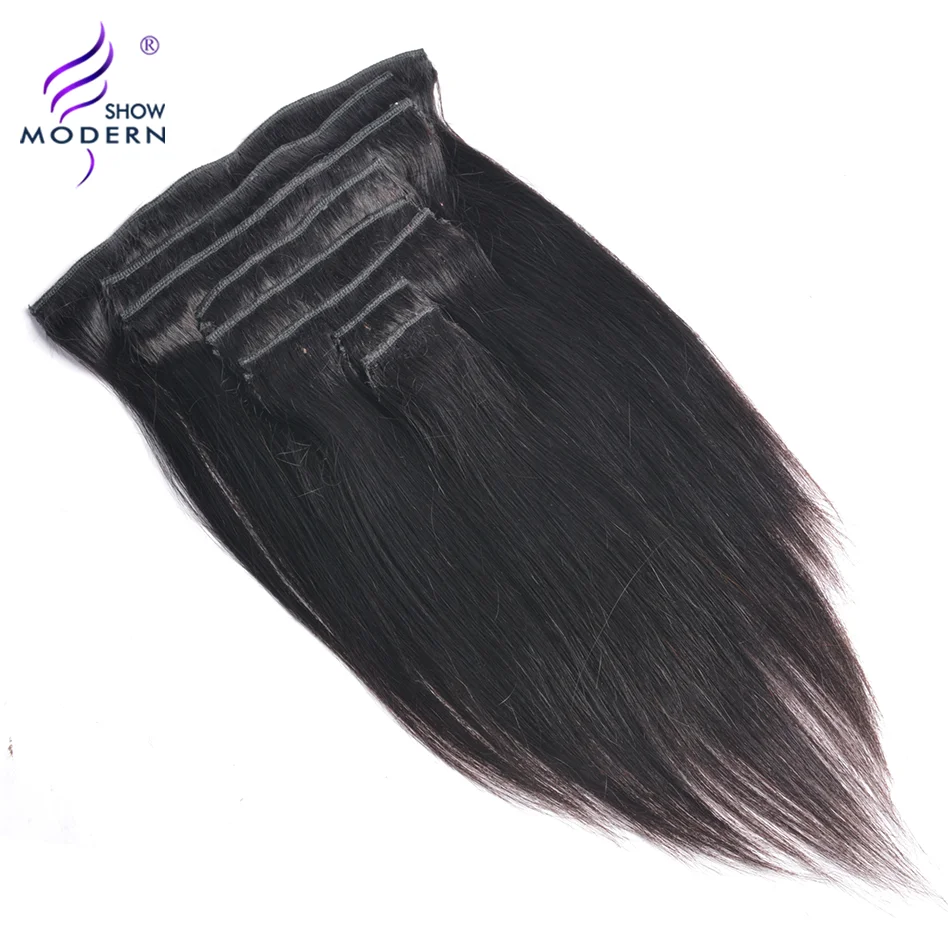 Современные волосы для шоу, перуанские прямые человеческие волосы Remy на заколках для наращивания, 120 г, комплект на всю голову, 8 шт., пряди для наращивания на заколках