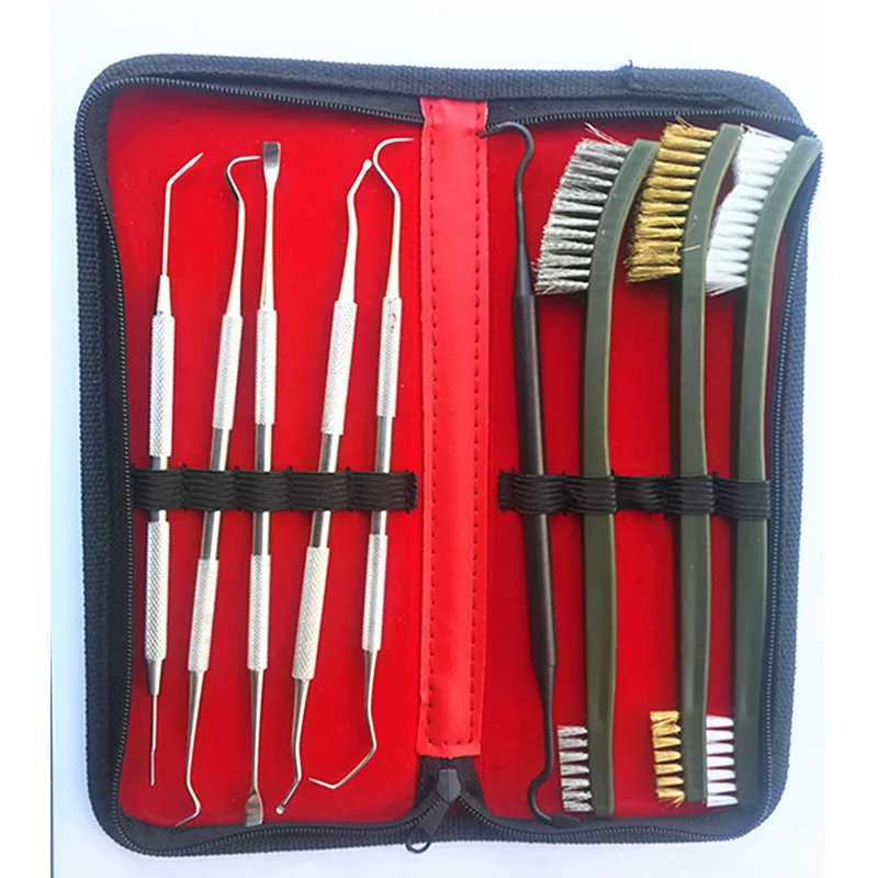 Высокое качество, прочный и долговечный Полезные инструменты для пистолета, особенно для чистки щелей Отлично подходит для чистки пистолета, автомобиля, дома, хобби, ремесел и т. д. Тип: щетка для чистки пистолета Цвет: черный и серебристый Вес: 200 г Кол-во в коробке: 9 шт./компл. Посылка включает в себя: 9 шт./компл. оружейная Чистящая кистей с чехлом для переноски Чехол