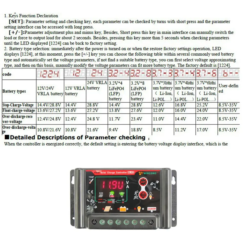 1. Контроллер может быть выбран из различных типов батарей, с различными батареями для точного управления, а также поддерживает литиевую батарею.