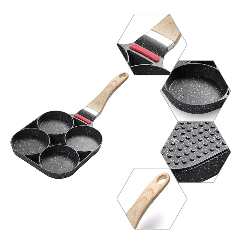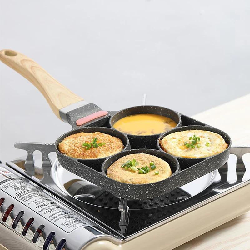 4 отверстия, жареное яйцо, сковорода, антипригарная ветчина, блинная машина, деревянная ручка, подходит для газовой плиты и индукционной плиты