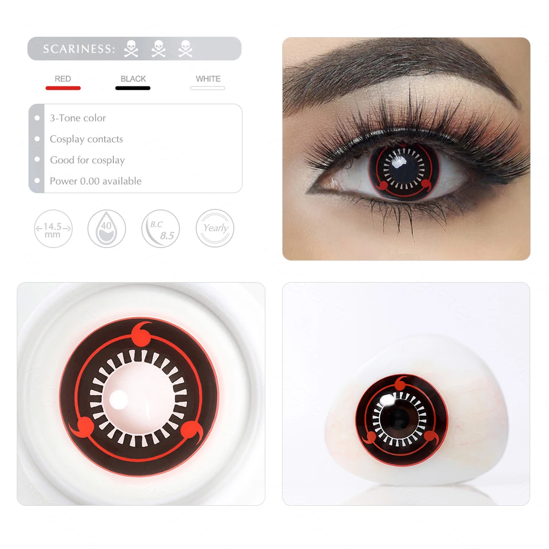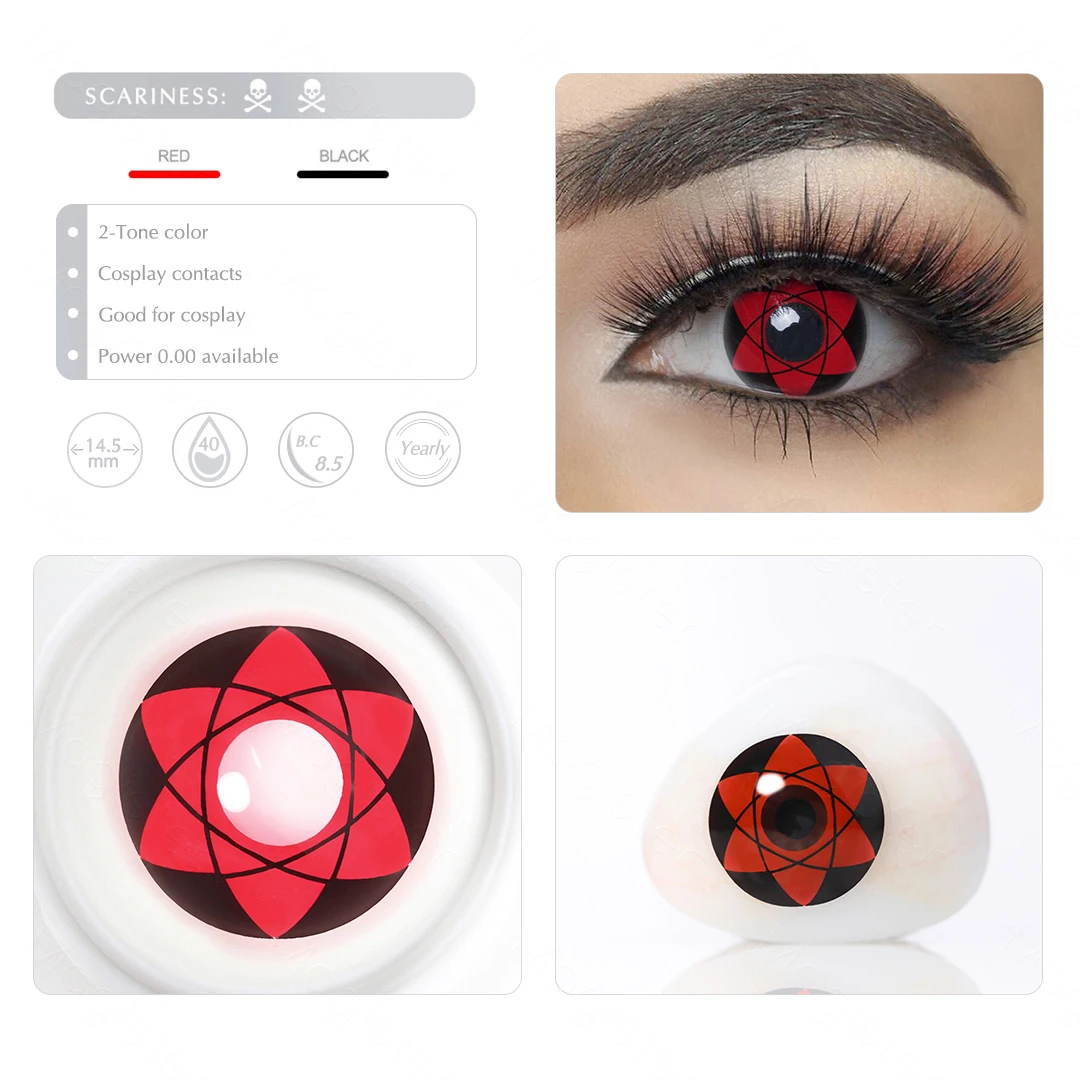 Halloween Contact Lenses Red Contacts for Eyes Anime Cosplay Contacts Sasuke Sharingan Contact Lens Colored Lenses Crazy Pupils