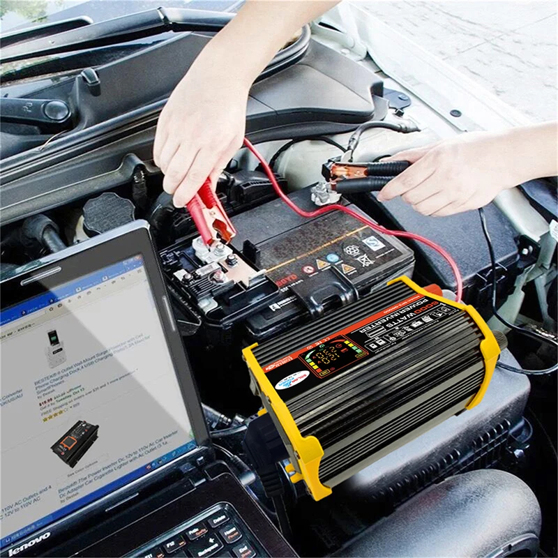 Вес: 0,85 кг6000 Вт Инвертор:Автомобильный инвертор с 2 usb-портами и выходом переменного тока. Импульсная мощность: 4000 Вт, инвертор питания поставляется с бесплатной прикуривателем и 2 зажимами для батарей, Обеспечивая непрерывную мощность 500 Вт, максимальная мощность 6000 Вт (убедитесь, что общая номинальная мощность подключенных устройств ≤ 500 Вт).