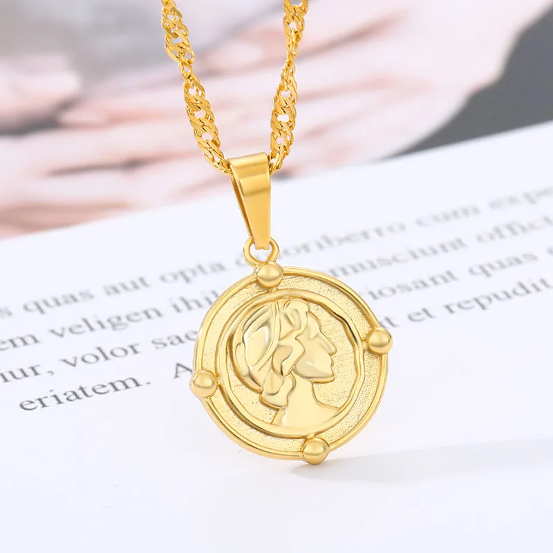 Ретро монета с портретом кулон ожерелье для женщин Золотой Серебряный цвет длинная цепочка ожерелье Бохо эстетическое ювелирное изделие 2020 Collier Femme