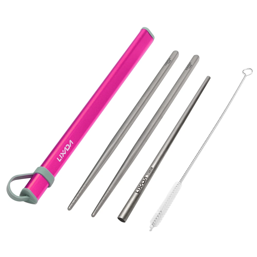 Этот набор инструментов для улицы включает в себя пару палочек для еды, питьевую соломинку и чистящую щетку, которые хранятся в алюминиевой трубке для хранения для удобной переноски, отлично подходят для кемпинга, пеших прогулок, альпинизма, путешествия и другие виды деятельности.