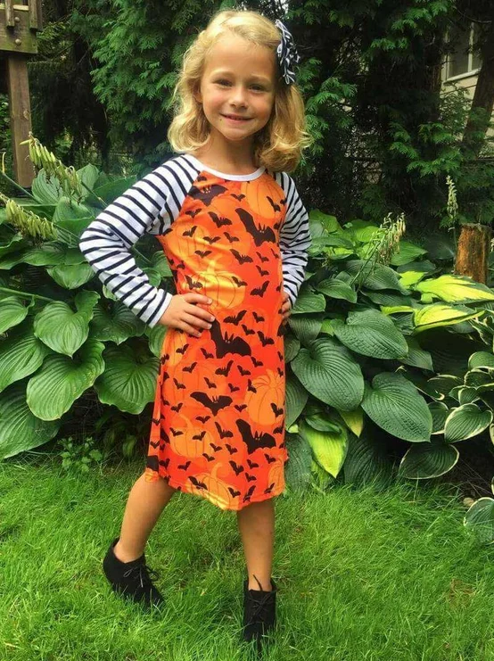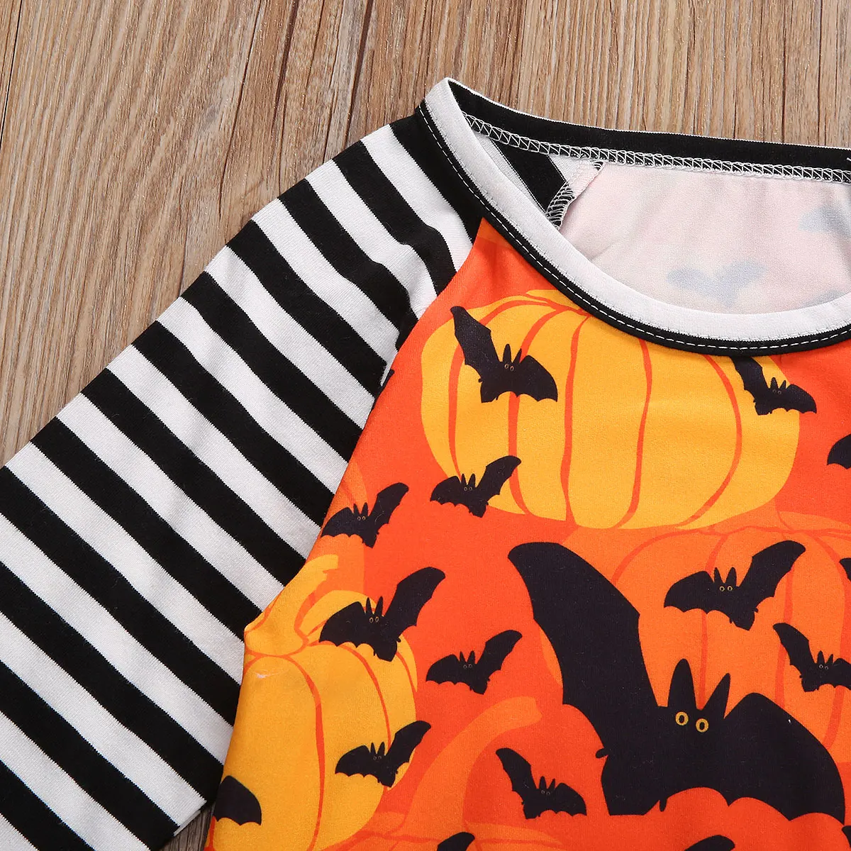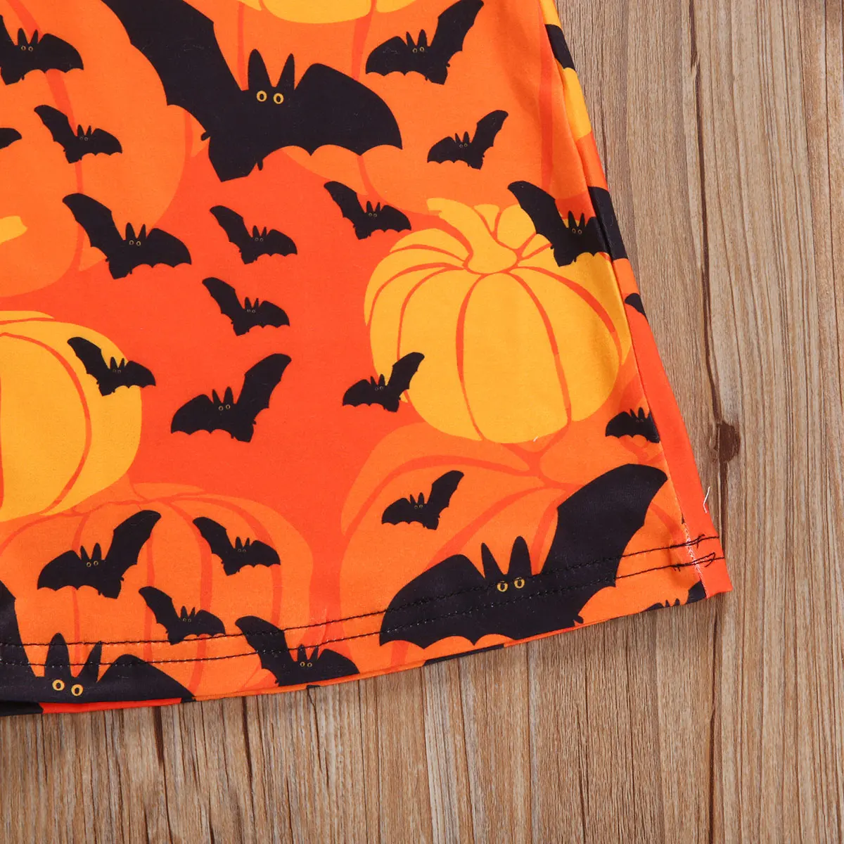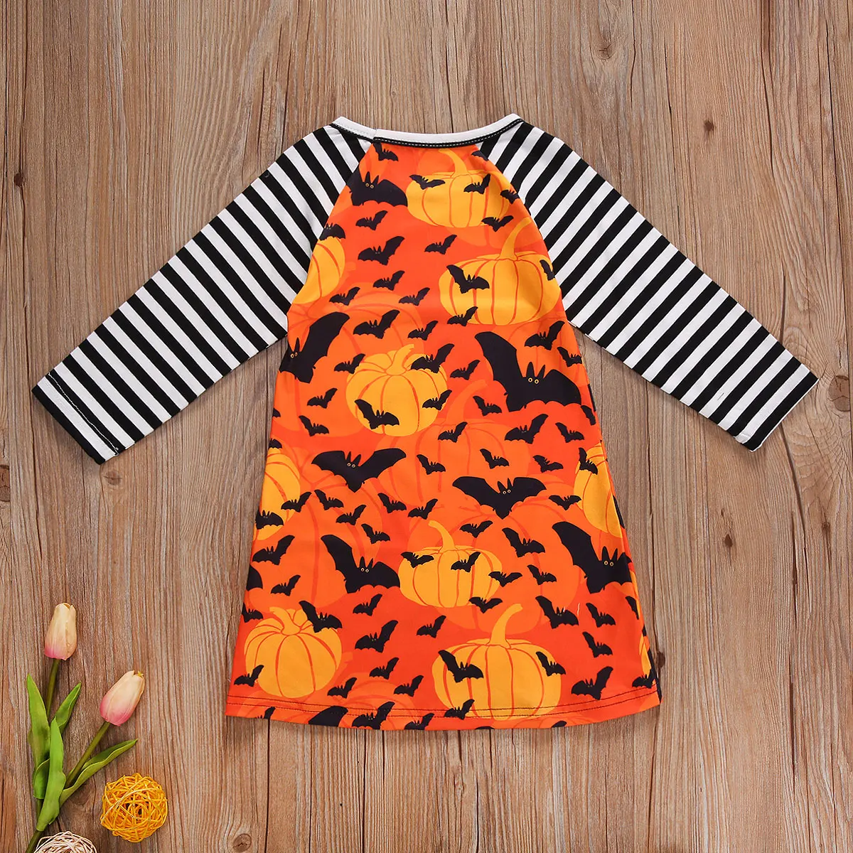 Платье на Хэллоуин для маленьких девочек, платье с длинными рукавами и рисунком тыквы и летучей мыши, осенняя одежда