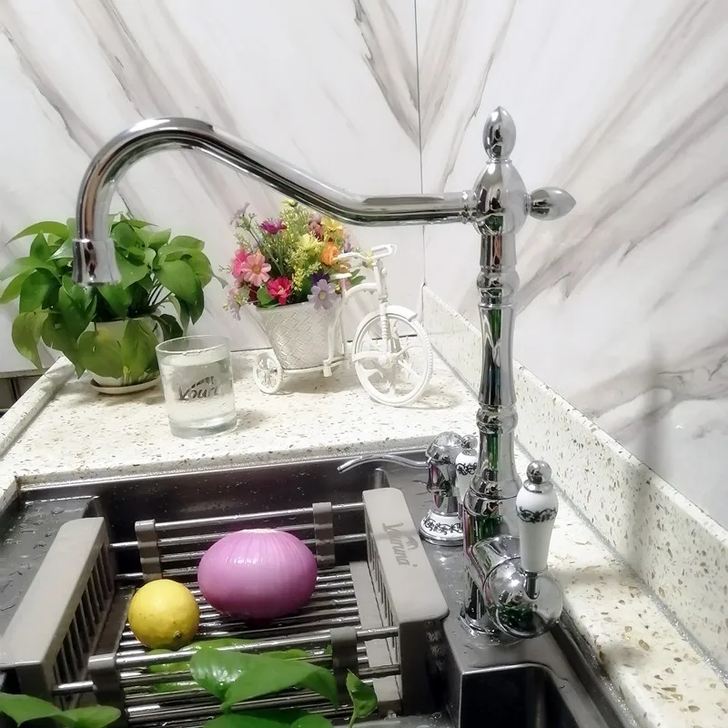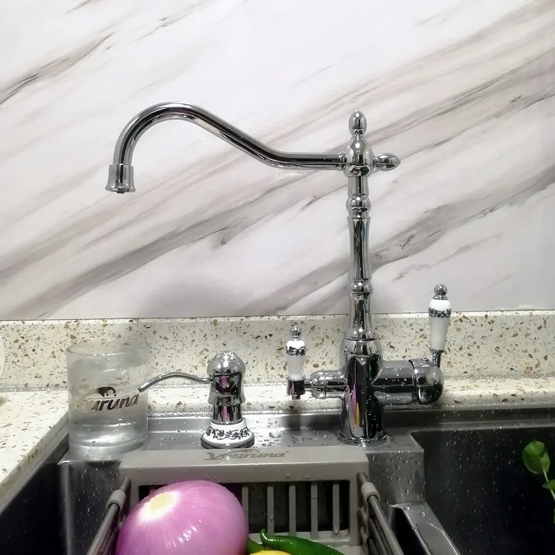 ♛Распределяет горячую и холодную воду с рычагом миксера на правой стороне ♛Распределяет фильтрованную воду с левого рычага (при подключении к комплекту фильтров для воды, в качестве альтернативы можно подключить к неразмягченному питанию для воды)-см. Аксессуары для комплектов фильтров для воды. ♛Носик крана имеет отдельную внутреннюю трубку для фильтрованной воды, чтобы избежать смешивания с нефильтрованной ♛Стильный современный дизайн из бронзы/золота/хрома Используются керамические клапаны, легко установить ♛Экономит пространство и беспорядок-нет необходимости в перепаде питьевой воды кран или отверстия в раковине, просто заменить ваш текущий Кухня кухонный кран с этим 3-х полосная кран ♛Легко подключить и заменить существующий кран