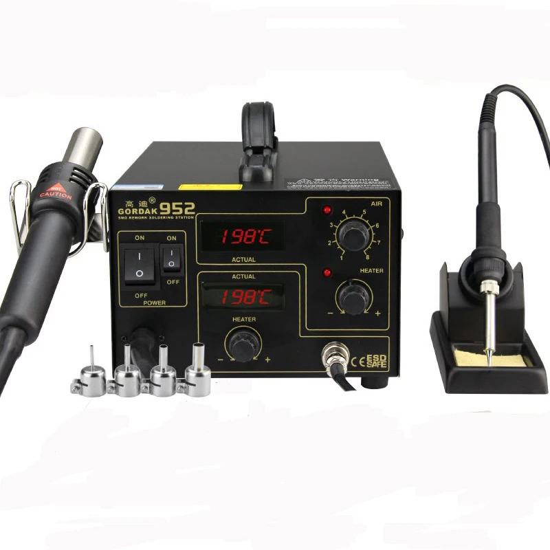 GORDAK 952 Двойной цифровой дисплей 2 в 1 паяльная станция демонтажная станция SMD термостатическая пайка станция горячего воздуха пистолет