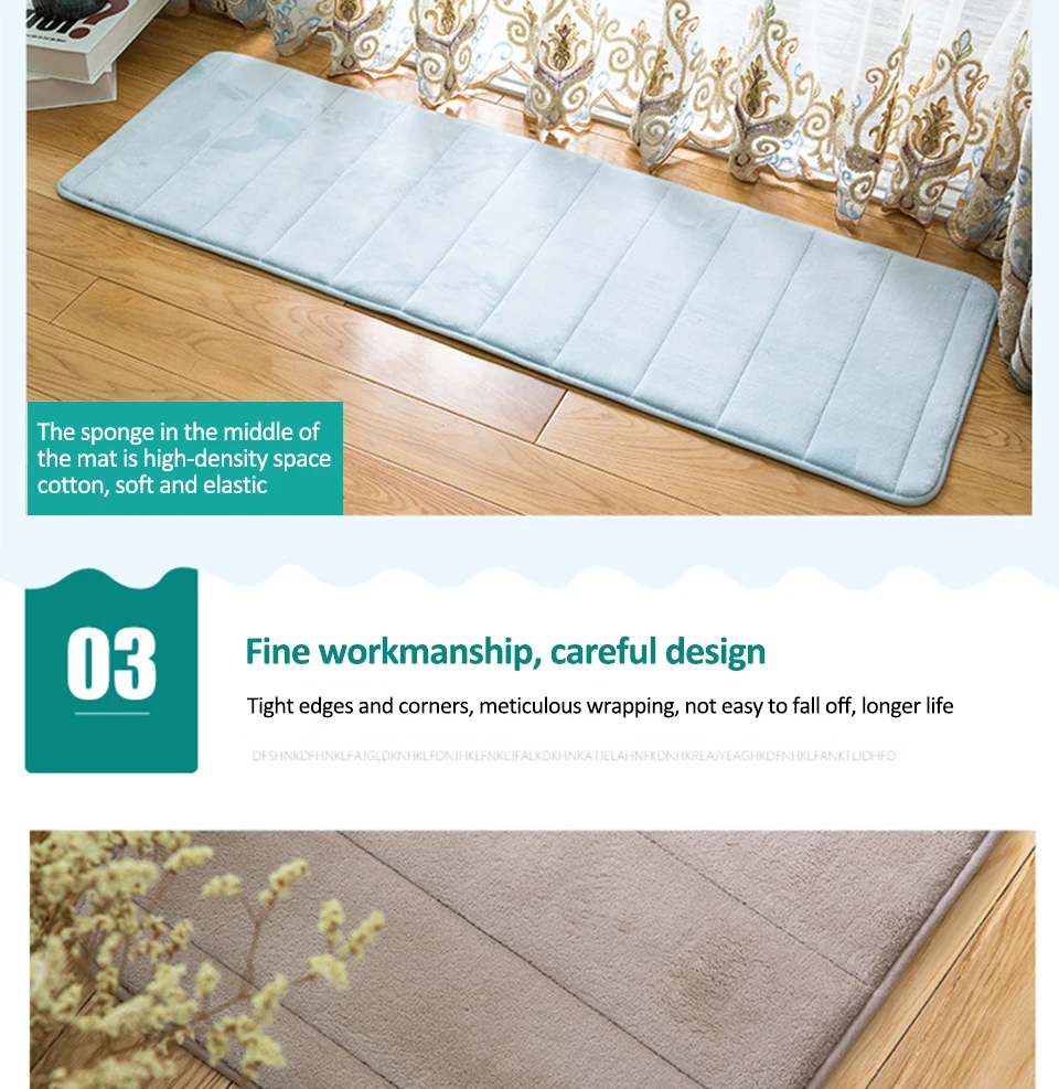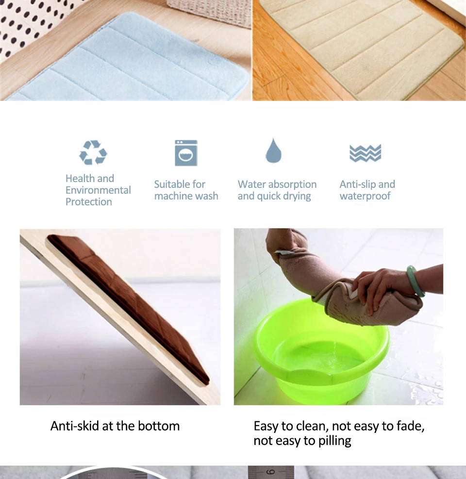 1. Поверхность изготовлена из кораллового флиса, мягкая и удобная, нескользящая латексная подошва, подкладка из пены с эффектом памяти, пена с эффектом памяти отличается от других ковриков для ванной, что более легко чистить и будет прессовывать форму своего индивидуального тела, поэтому она чувствует себя более удобной и мягкой. 2. Наши коврики из пены с эффектом памяти поставляются с противоскользящей подложкой, которая добавляет измерение безопасности на твердых (и, возможно, влажных) поверхностях. 3. Резиновая подложка помогает предотвратить скольжение коврика. 4. Мягкий на ощупь, квалифицированный вид поднимает вкус вашей комнаты. 5. Устойчивость к плесени, нескользящая подложка, сильный водопоглощающий материал. 6. Более удобные и мягкие, более эластичные. 7. Легко моется и быстро сохнет. Технические характеристики: Материал: коралловый флис + пена с эффектом памяти Размеры: 40x6 0 см/50x80cm Цвет: розовый, армейский зеленый, розово-красный, фиолетовый, винно-красный, рисовый белый, кофейный, синий, серый, голубой, светильник Посылка включает в себя: 1 х коврик для ванной Примечания: 1. Из-за разницы между различными мониторами изображения могут не отражать фактический цвет изделия. 2. Сравните размеры деталей с вашими, пожалуйста, учтите небольшую разницу из-за ручного измерения. Спасибо за понимание. Предосторожности при стирке 1. Машинная стирка отдельно в холодной воде и Замачивание в воде в течение 10 минут; Используйте мягкое моющее средство; Не отбеливать и не подвергать химической чистке; Сушить в стиральной машине, сушить в низкой температуре 2. Ручная стирка отдельно в холодной воде и Замачивание в воде в течение 10 минут; Мягко используйте мягкое моющее средство и щетку; Не отбеливать и не подвергать химической чистке; Сушить в сушильной машине, низкое нагревание.