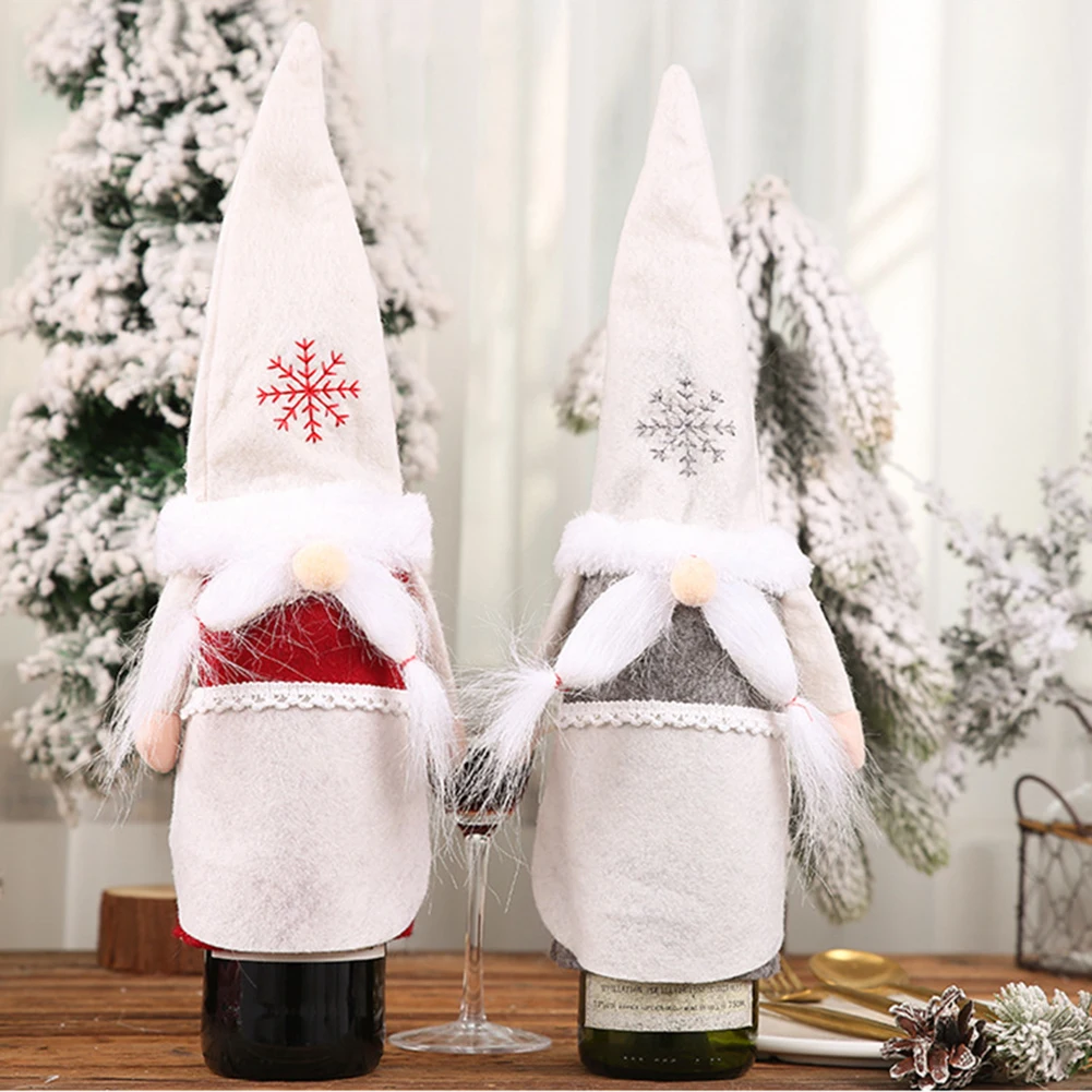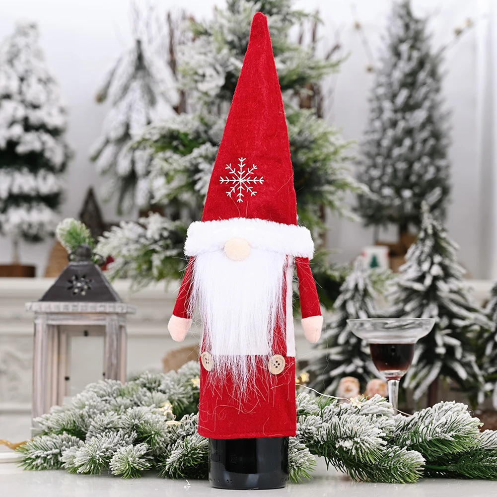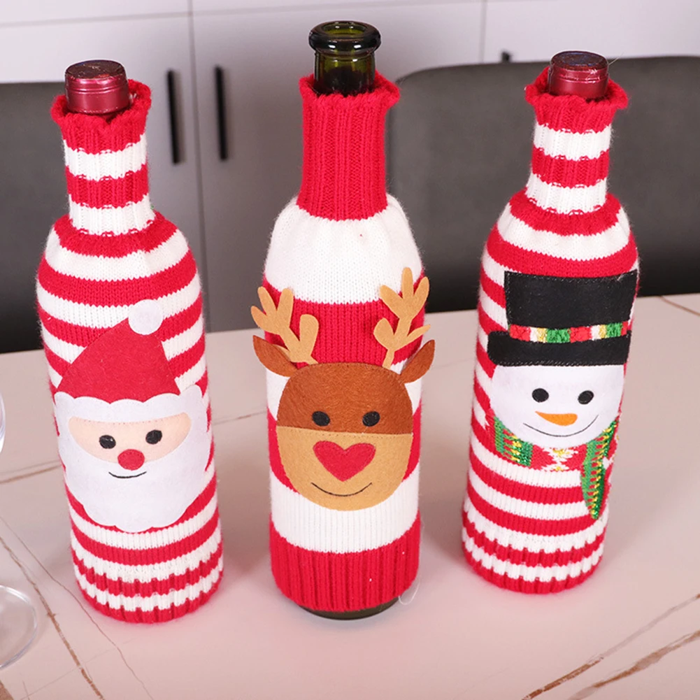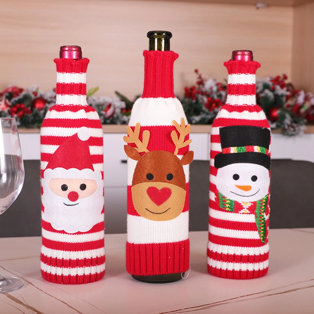 -Упаковка для винной бутылки с различными рождественскими мультяшными элементами.