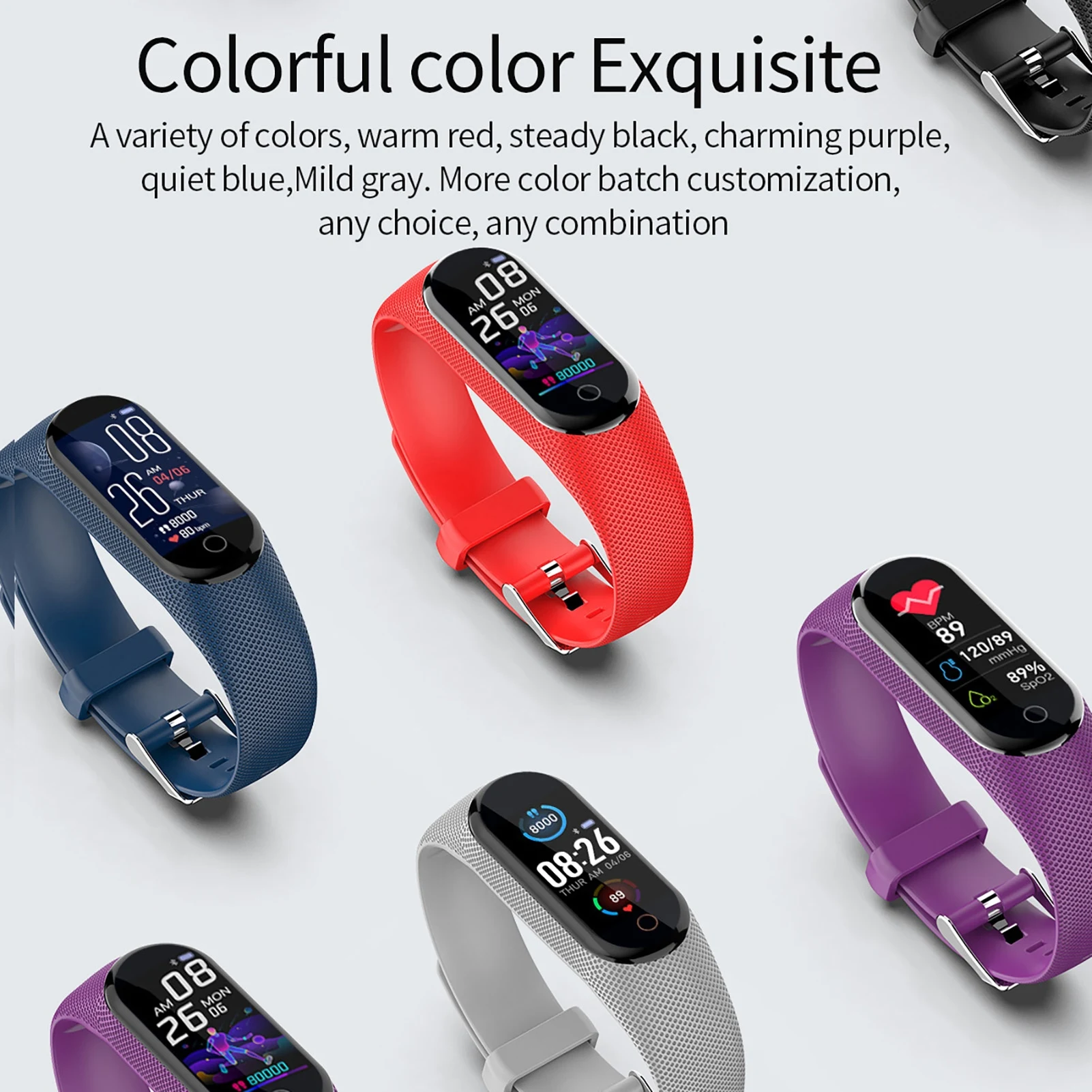 Изготовлен из поликарбоната и ТПУ, умный браслет Прочный и мягкий в носке.