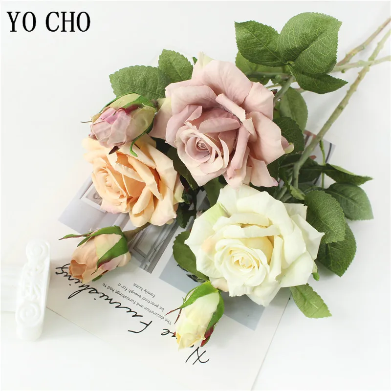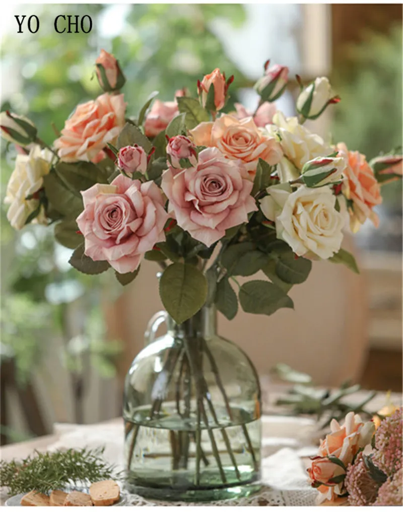 YO CHO розовый Шелковая Роза украшение для свадьбы букет цветов Свадебный DIY невесты цветы подружки невесты латексные искусственные розы белый букет de fleur Mariage домашний декор