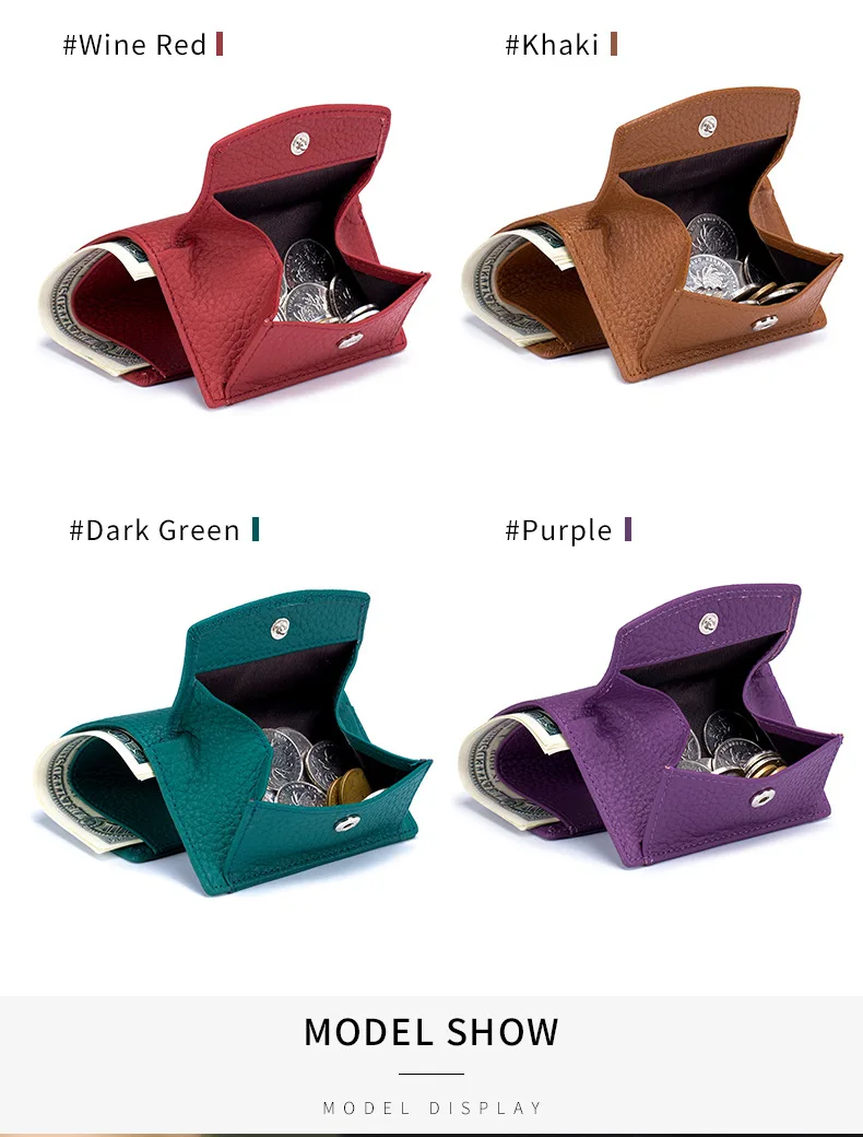 Top layer cowhide leather coins bag wallet