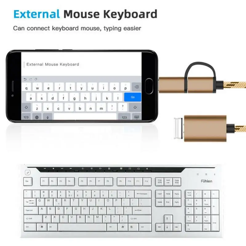 Описание: Описание 1. Этот адаптер Micro USB Type-C-USB 3,0 поддерживает большинство смартфонов, прост и удобен в использовании. 2. Разъем используется для зарядки и передачи данных, что является простым и удобным в использовании. 3. Небольшой размер и легкий вес делают этот адаптер легким и удобным для переноски. 4. Провод этого адаптера изготовлен из нейлона, который долговечен и долговечен. 5. micro USB type-C конвертер USB имеет большой спектр применения, подходит для дома, путешествия, офиса и так далее. Характеристики: Спецификация: Длина кабеля: 17 см. Функция: передача + зарядка. Материал: нейлоновая проволока. Цвет: Золотой/серый. Посылка включает в себя: Кабель-адаптер OTG-1 шт. Примечания: Примечание: Из–за разных компьютерных разрешений может быть небольшое цветовое искажение. Возможны ошибки в размере из-за различных настроек компьютера.