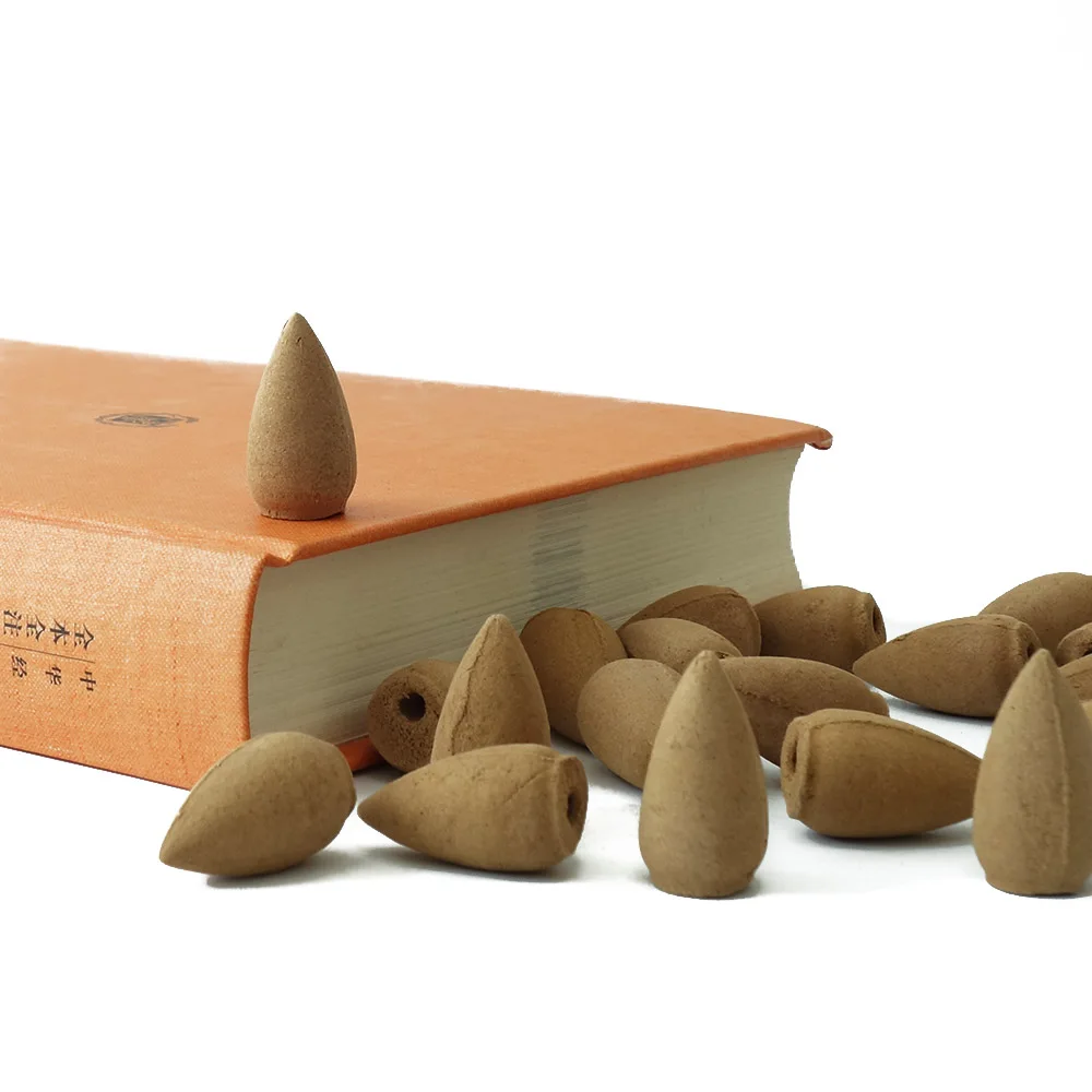 Около 100 сандалового дерева конусов Подарит вам расслабляющую и спокойную атмосферу, подходящую для сжигания в комнате. Эффект заднего потока дыма увеличивает декоративную ценность. Не включает держатель для благовоний