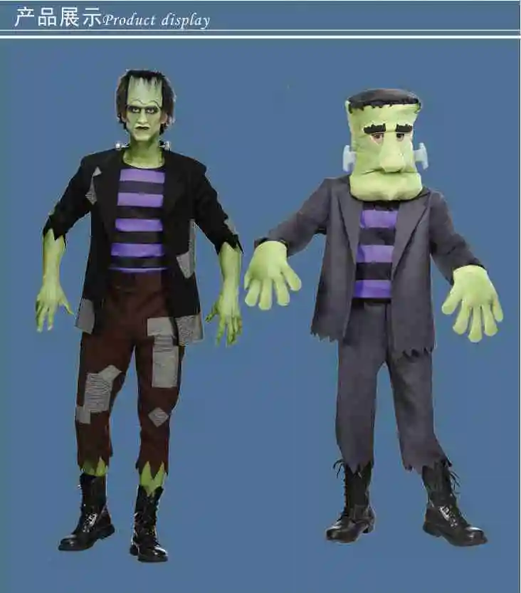 Новый зеленый костюм Франкенштейна, детский костюм на Хэллоуин для мальчиков и взрослых, мужской комбинезон с маской, аксессуары
