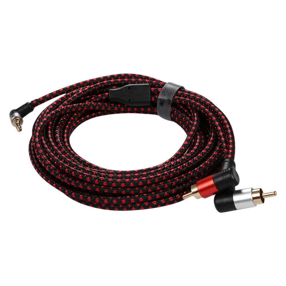 6. Бескислородный медный проводник, прочный, Мягкий Хлопок Плетеный, угол 3,5 мм (1/8 ") стерео штекер, литый золотом, угол 2 RCA (вправо/влево) стерео штекер позолоченный штекер