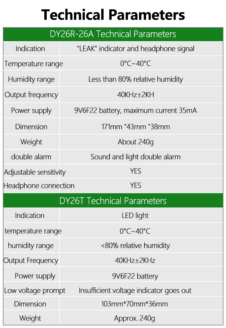 DY26AПодходит для различных утечек и имеет зонд 420 мм.