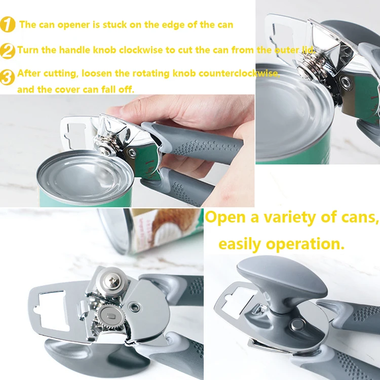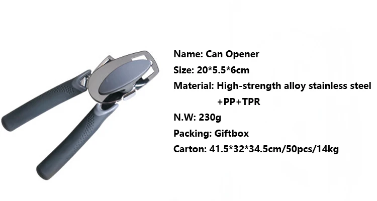 Легированная зубчатая режущая головка, прочная и острая, не легко носить. Отверстие банки плоское и гладкое, и все виды банок могут быть легко открыты.