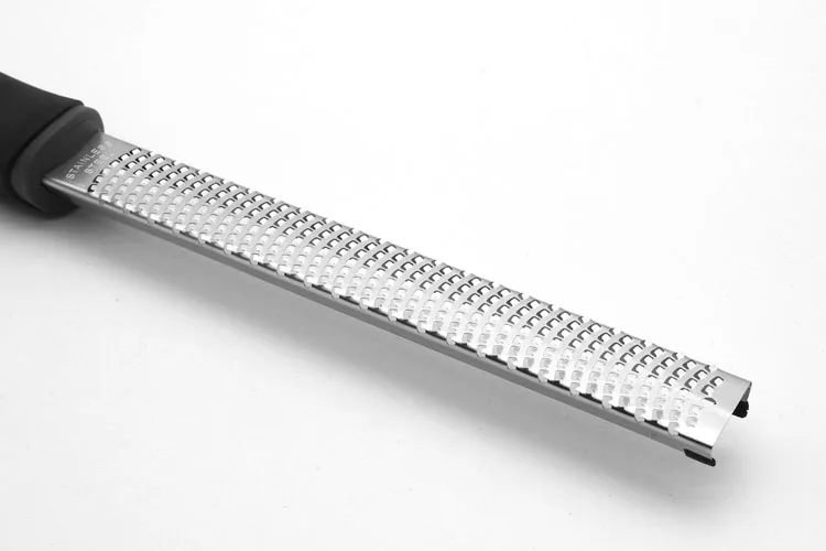 Скребок имеет уникальную технологию травления рисунка, чтобы легко очистить даже крошку. Используется для шоколада, сыра, лимонов, фруктовых стружек