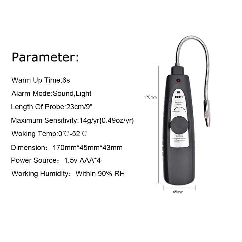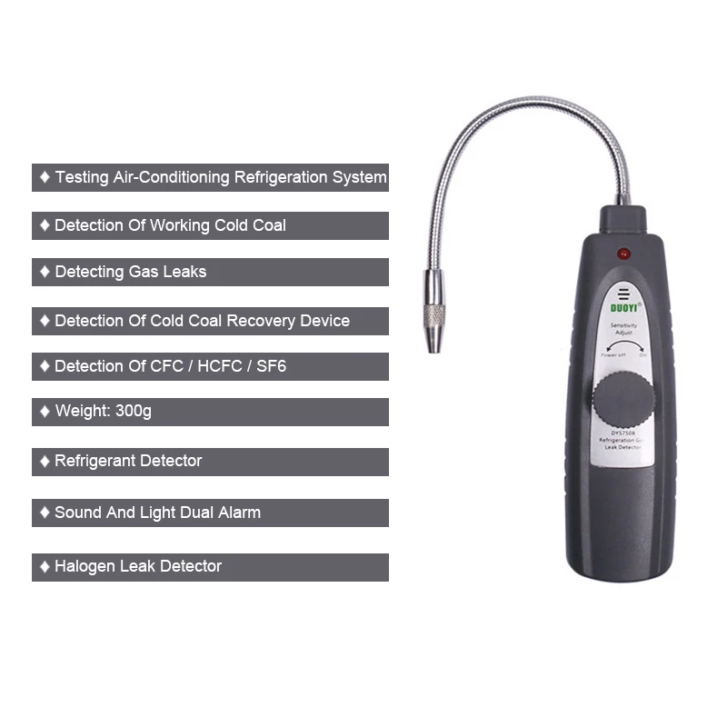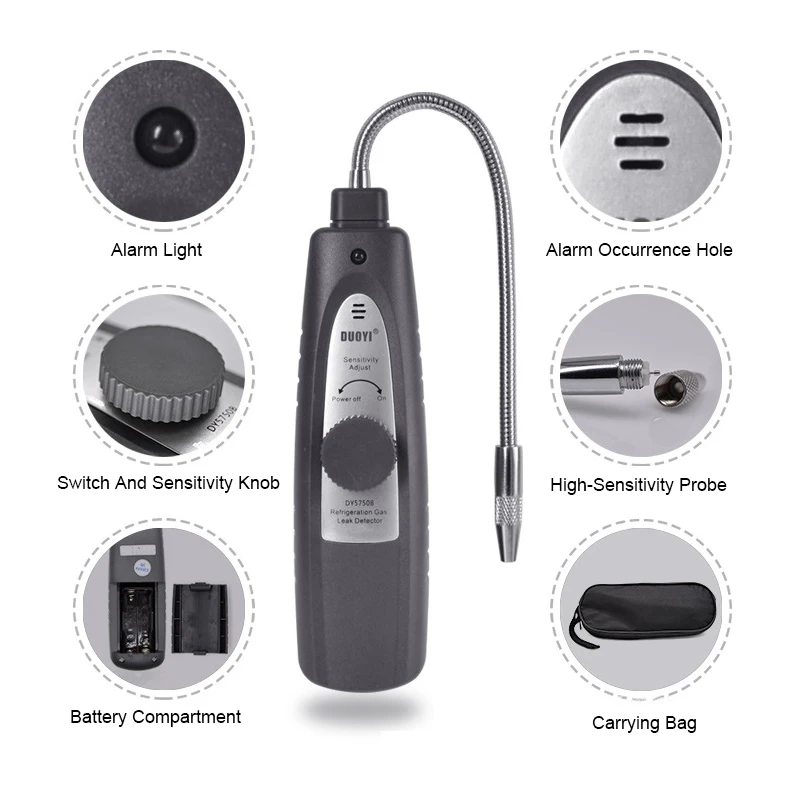 9. Этот детектор представляет собой портативный и надежный детектор утечки для обнаружения утечки в кондиционерах и хладагентах.